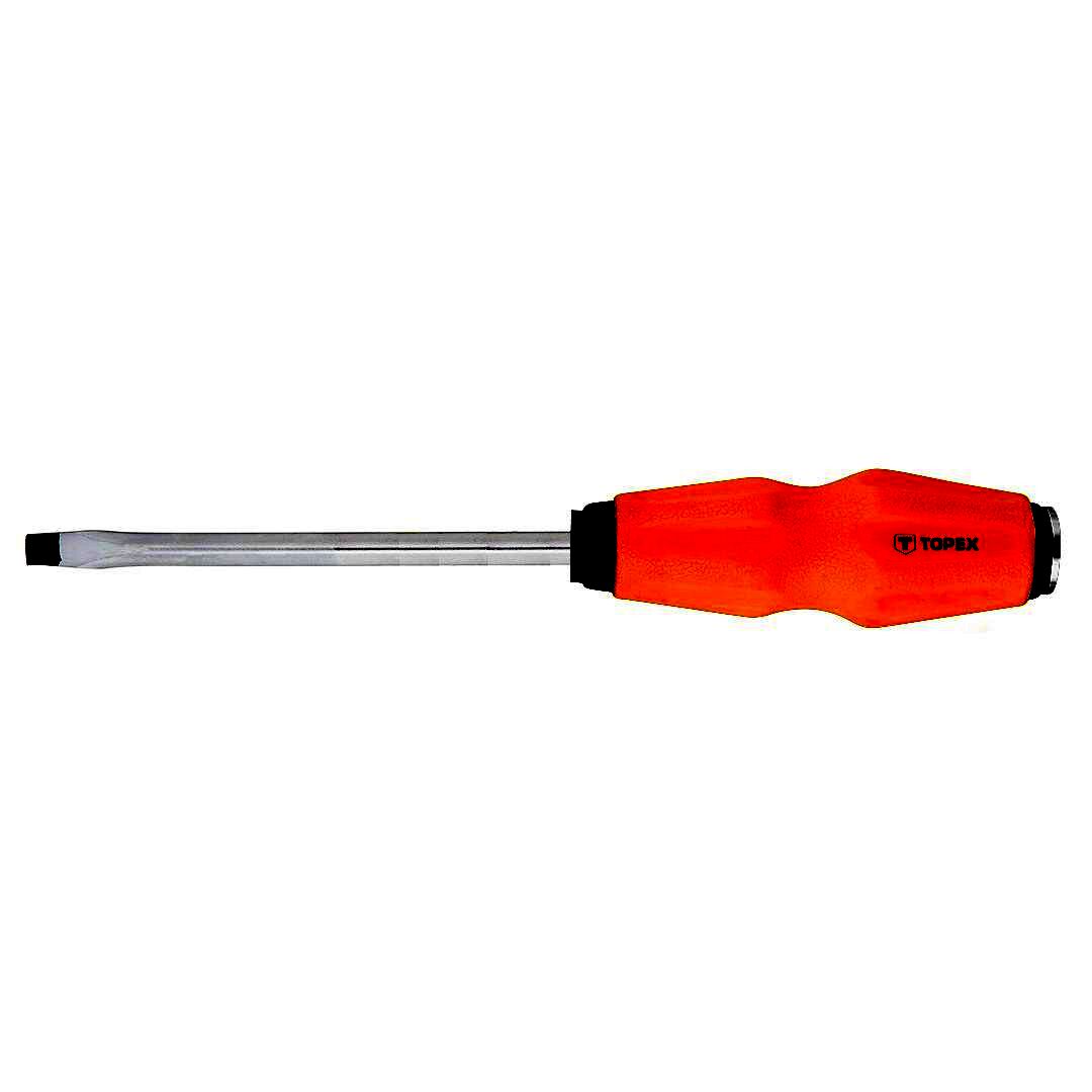 A TOPEX üthető lapos csavarhúzó besült, túl erősen meghúzott csavarok kilazítására, meghúzására szolgál. Hegye nagy ellenállóképességű, a szerszámnak hosszú élettartamot biztosító króm-vanádium acélból készült. A mágneses hegy megkönnyíti a szerszámmal végzett munkát A műanyagból készült ergonómikus markolat jól fekszik a tenyérben, növelve a munkavégzés kényelmét. A TOPEX márka ezermestereknek készül.