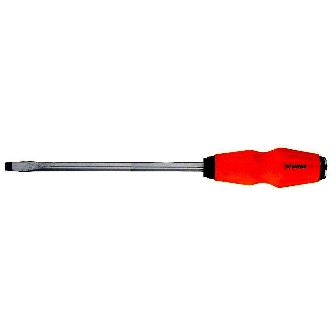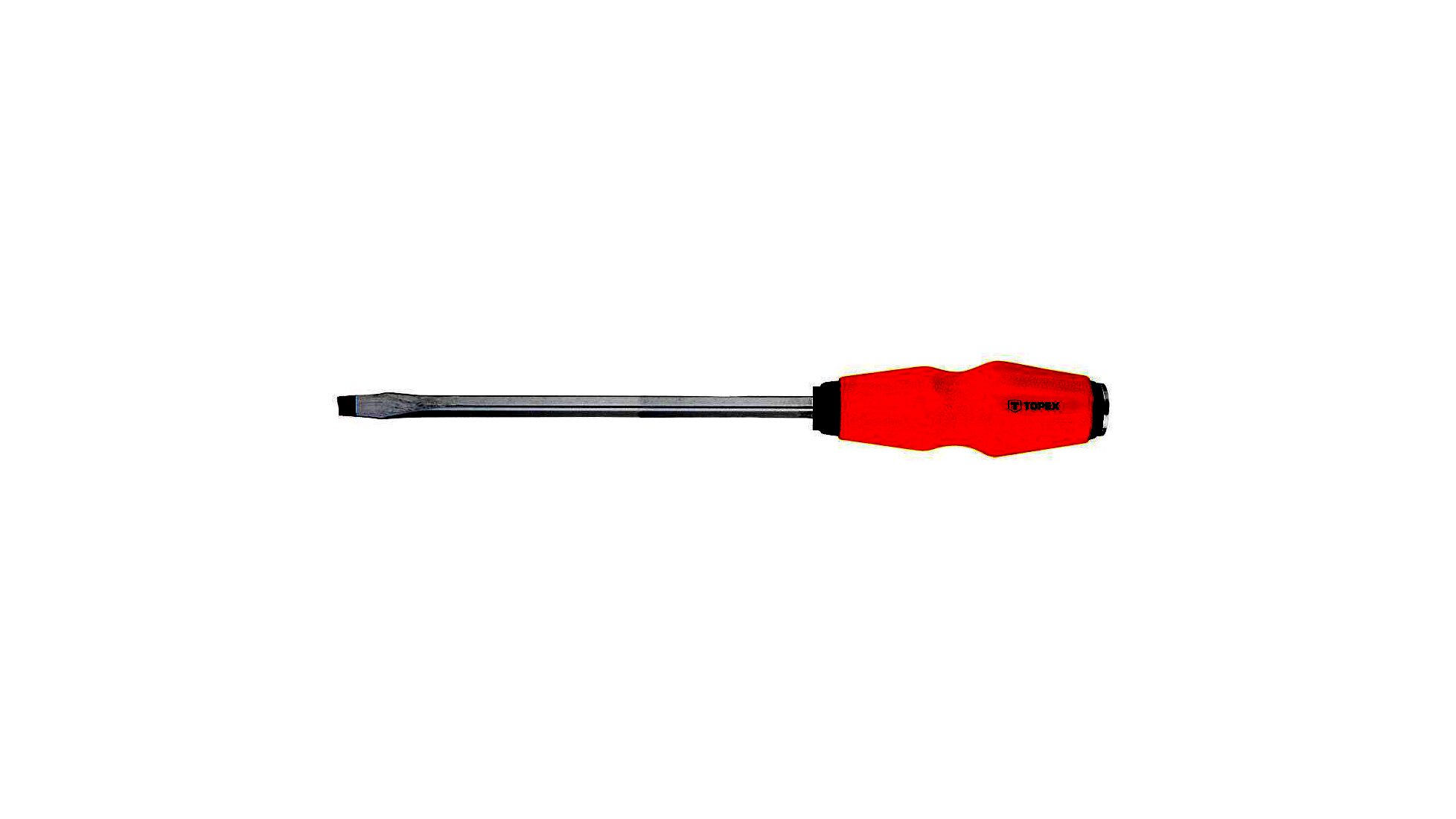 A TOPEX üthető lapos csavarhúzó besült, túl erősen meghúzott csavarok kilazítására, meghúzására szolgál. Hegye nagy ellenállóképességű, a szerszámnak hosszú élettartamot biztosító króm-vanádium acélból készült. A mágneses hegy megkönnyíti a szerszámmal végzett munkát A műanyagból készült ergonómikus markolat jól fekszik a tenyérben, növelve a munkavégzés kényelmét. A TOPEX márka ezermestereknek készül.