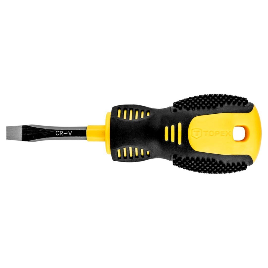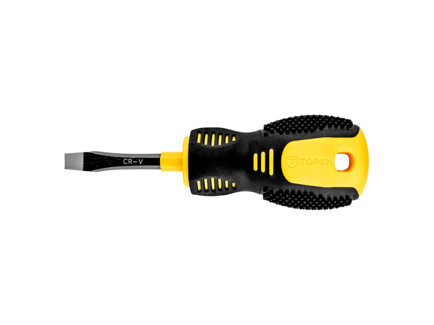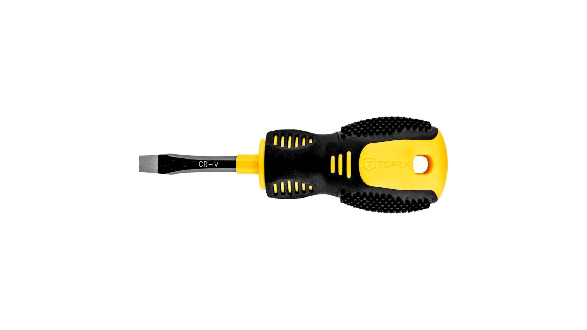 A TOPEX lapos csavarhúzó kiválóan alkalmas szerelési, barkácsolási munkákhoz. Hegye nagy ellenállóképességű, a szerszámnak hosszú élettartamot biztosító króm-vanádium acélból készült. A mágneses hegy megkönnyíti a szerszámmal végzett munkát Az ergonómikus, csúszásmentes anyaggal bevont műanyag markolat biztosítja a kényelmet és a biztonságot a munkavégzés során. A TOPEX márka ezermestereknek készül.