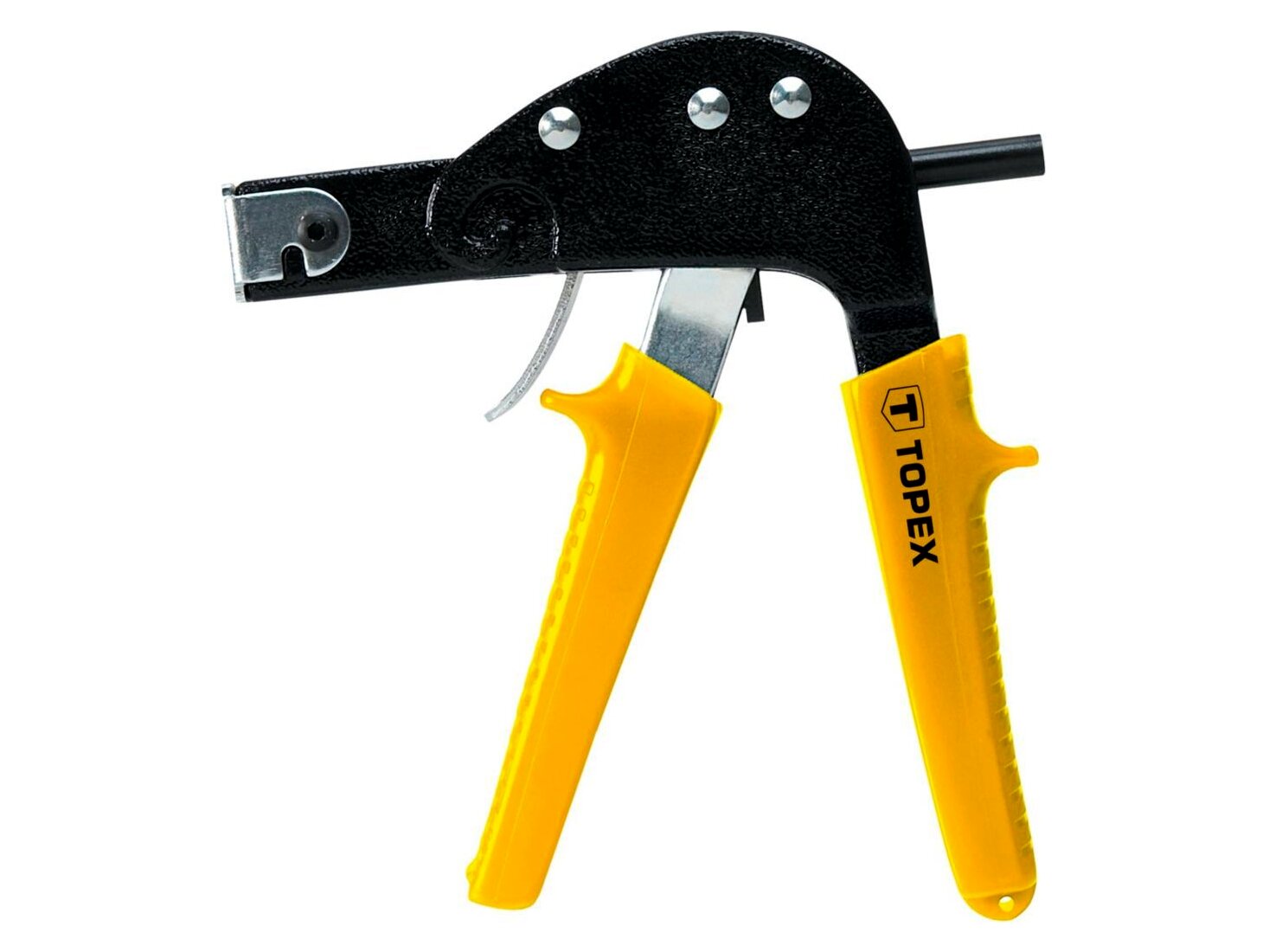 TOPEX gipszkarton tipliző fogó, 3-6 mm átmérőjű tiplikhez. A fogó felső markolata és teste erős acélból készült. A TOPEX márka ezermestereknek készül.