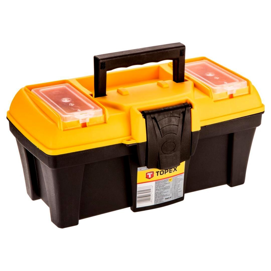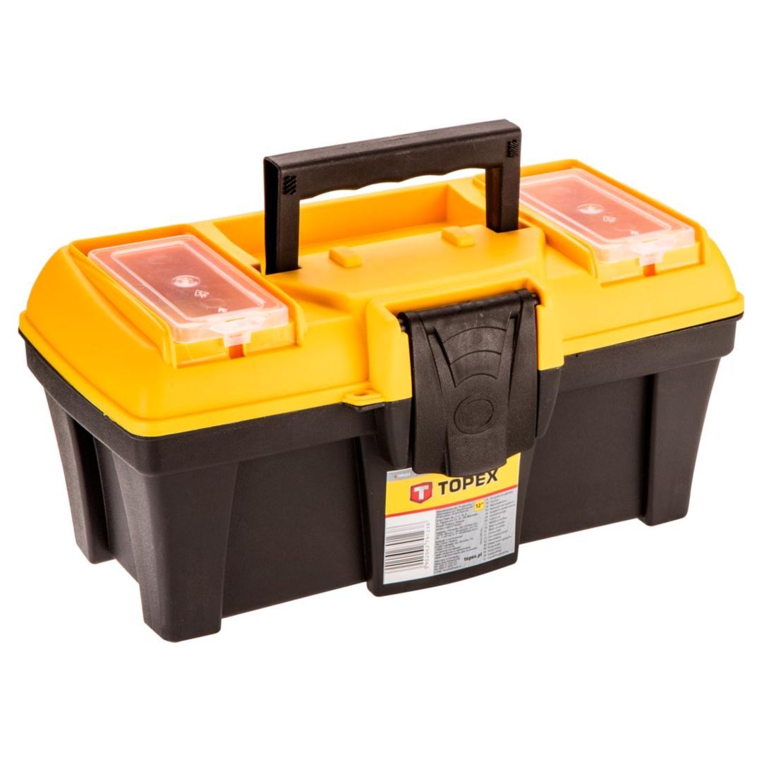 A TOPEX szerszámosláda praktikus, kis súlyú szerszámosláda strapabíró műanyagból. El van látva két rendeződobozzal az apró elemek tárolásához, valamint kényelmes hordfogantyúval. A TOPEX márka ezermestereknek készül.