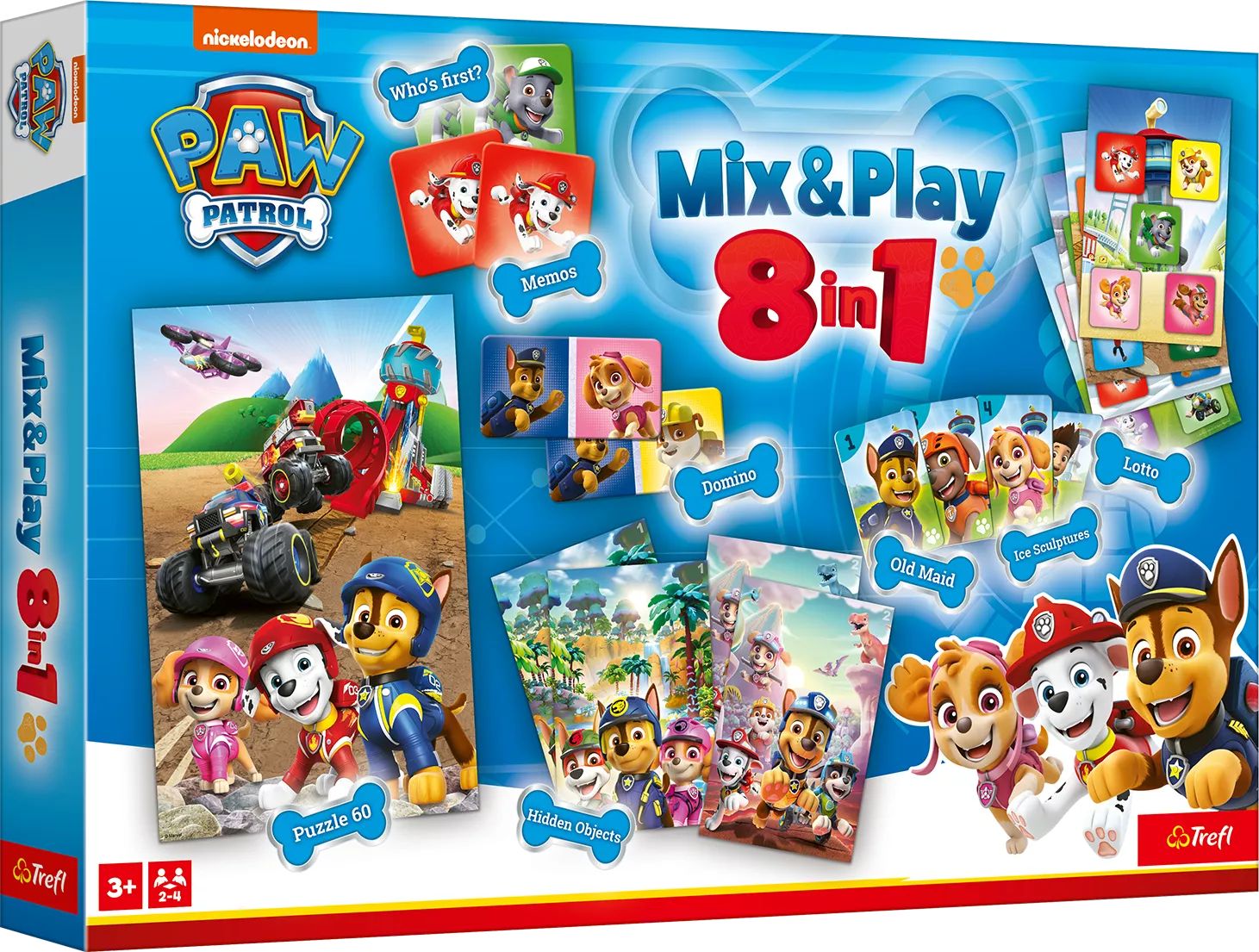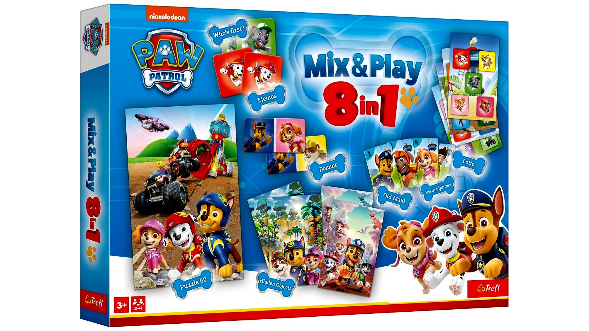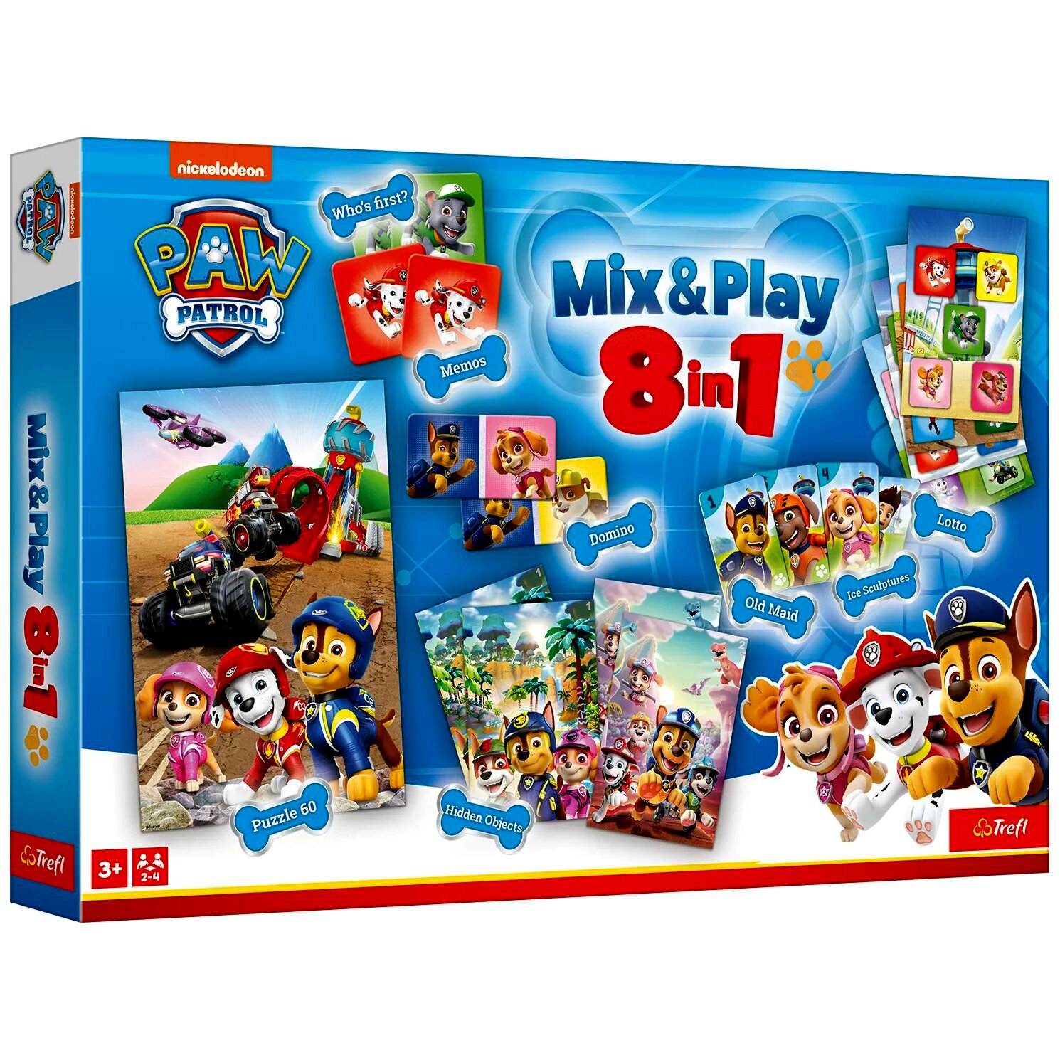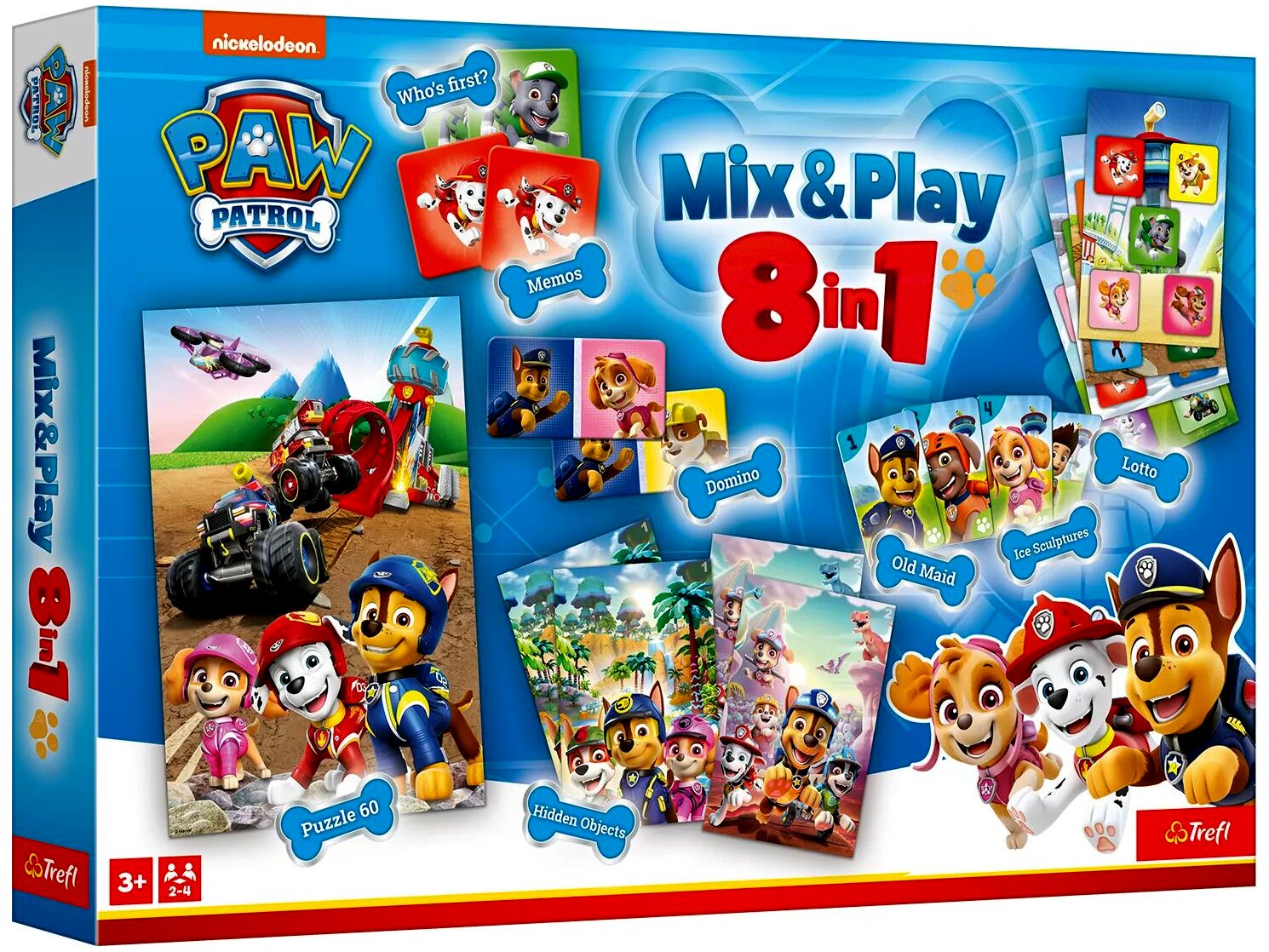 A Trefl Mancs őrjárat 8 az 1-ben társasjáték jó választás, ha egyetlen készlettel többféle, közösen játszható elfoglaltságot kerestek. Különösen praktikus, ha szeretnétek a változatosságot egy jól ismert, gyerekek által kedvelt témával.