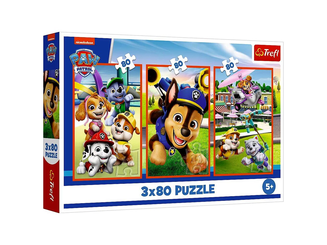 Prémium minőségű, 3 x 80 darabos puzzle Mancs őrjárat rajongóknak. A darabok tökéletesen illeszkednek. Kicsik és nagyok számára egyaránt izgalmas és szórakoztató időtöltés, amelyet egyszerűen képtelenség megunni. A puzzle szétszedhető, majd újra összerakható, ha pedig összeragasztjuk a darabokat, bekeretezve akár a szoba dísze is lehet.
