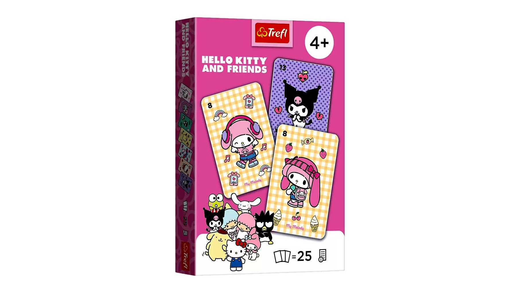 A kártyákon Hello Kitty és barátai jelennek meg, ami segít a gyerekeknek abban, hogy szívesen vegyék kézbe a paklit és könnyebben megkülönböztessék a lapokat.