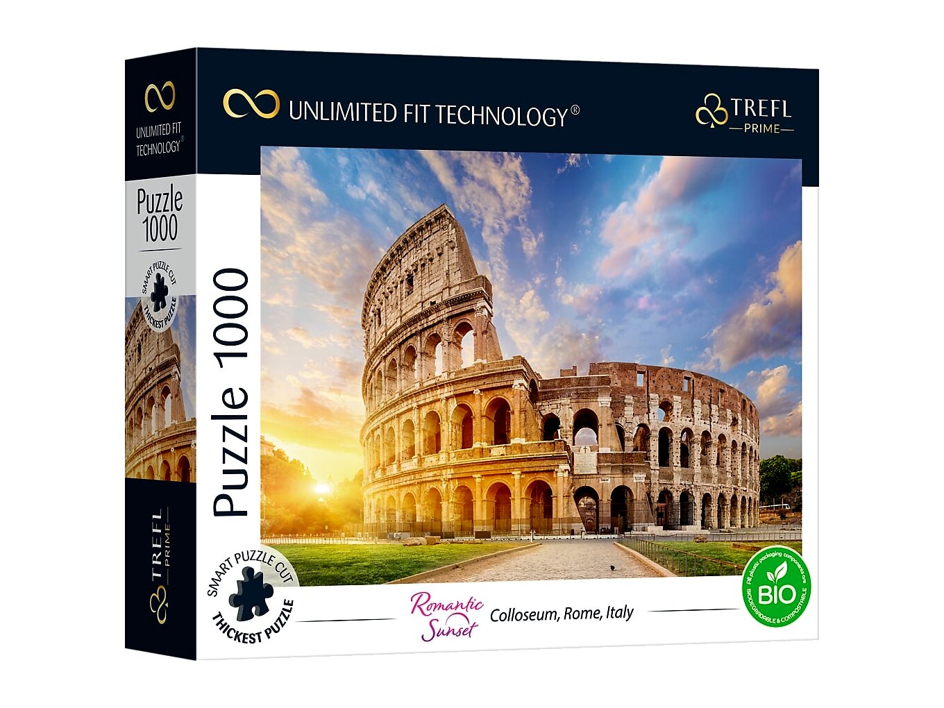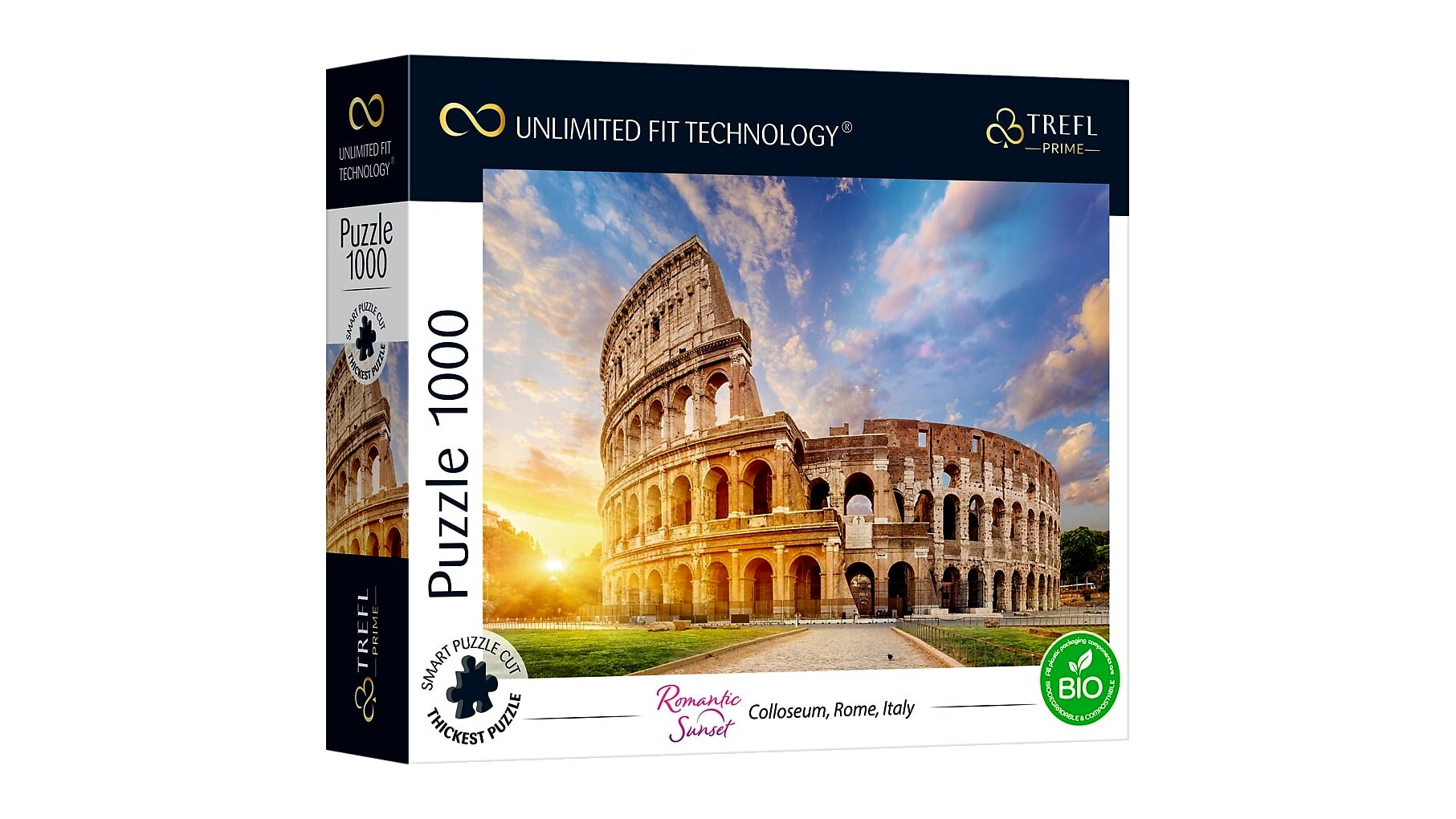 Prémium minőségű, 1000 darabos puzzle, amely a római Kolosszeumot ábrázolja. A vastag anyagból, különleges vágási módszerrel készült elemek tökéletesen illeszkednek egymáshoz, ennek köszönhetően könnyedén mozgatható a teljes puzzle egyben.A Trefl Prime kirakók különlegessége, hogy az azonos méretű kirakókat egyszerűen montázzsá is lehet alakítani, így mindenki létrehozhatja a saját ízlése szerinti képet a nappali falára.