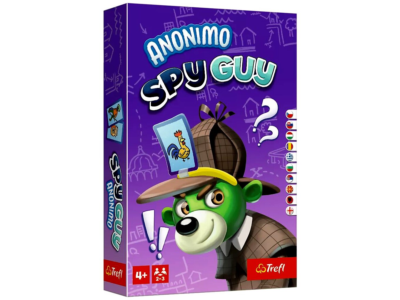 A Trefl Spy Guy Anonimo egy könnyen tanulható, interaktív kártyás társasjáték, amelyben a játékosok kérdezéssel és következtetéssel igyekeznek rájönni a titkos információkra. Rövid körökkel, közös beszélgetéssel és logikus gondolkodással teszi izgalmassá a játékidőt.