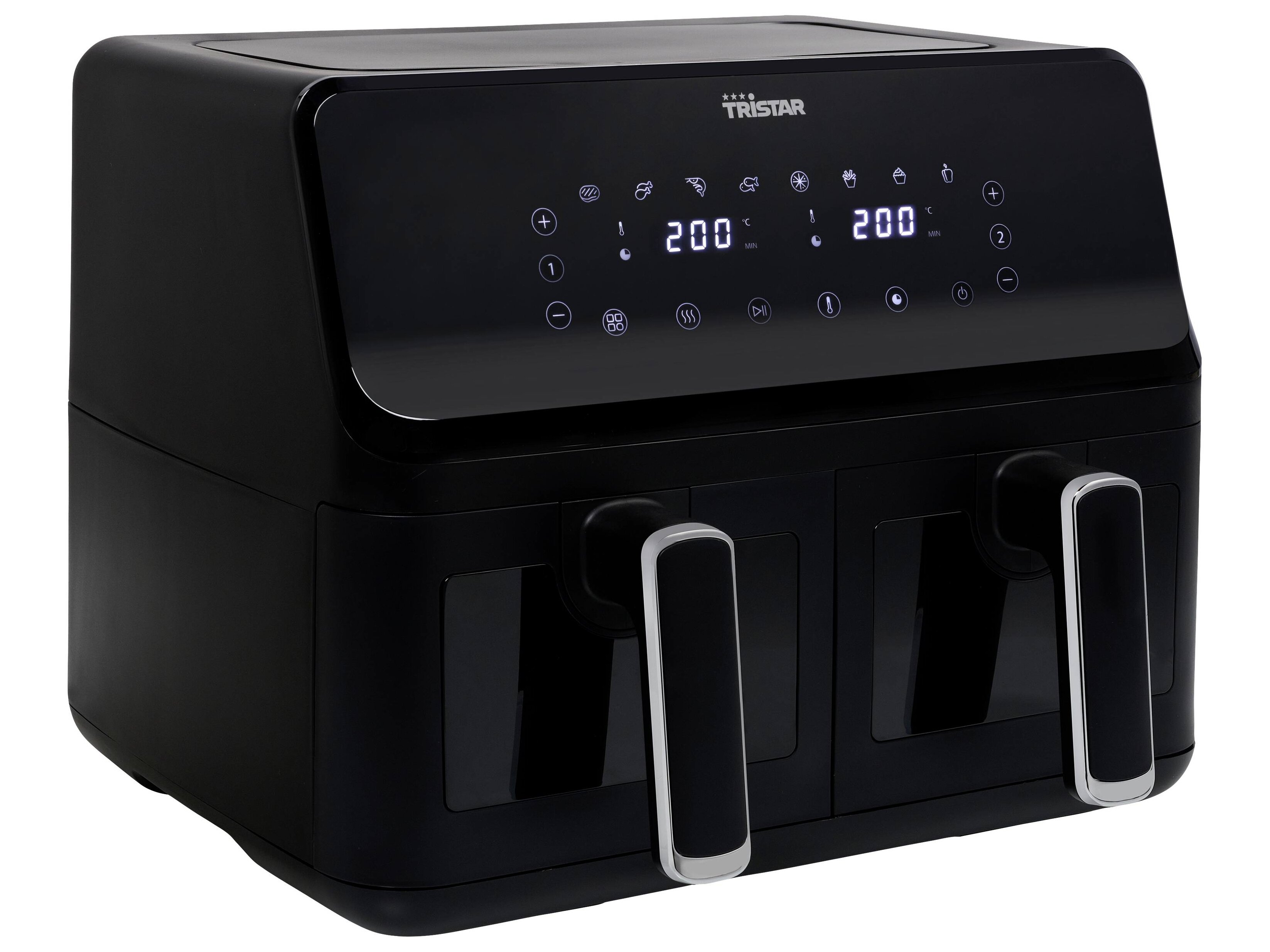 A Tristar FR-9040 dupla kosaras forrólevegős sütővel kétféle ételt készíthetsz el egyszerre – gyorsan, kényelmesen és egészségtudatosabban. A 8 literes kapacitásnak és a 2700 W teljesítménynek köszönhetően ideális választás családoknak, vendégségekhez vagy nagyobb étkezésekhez.