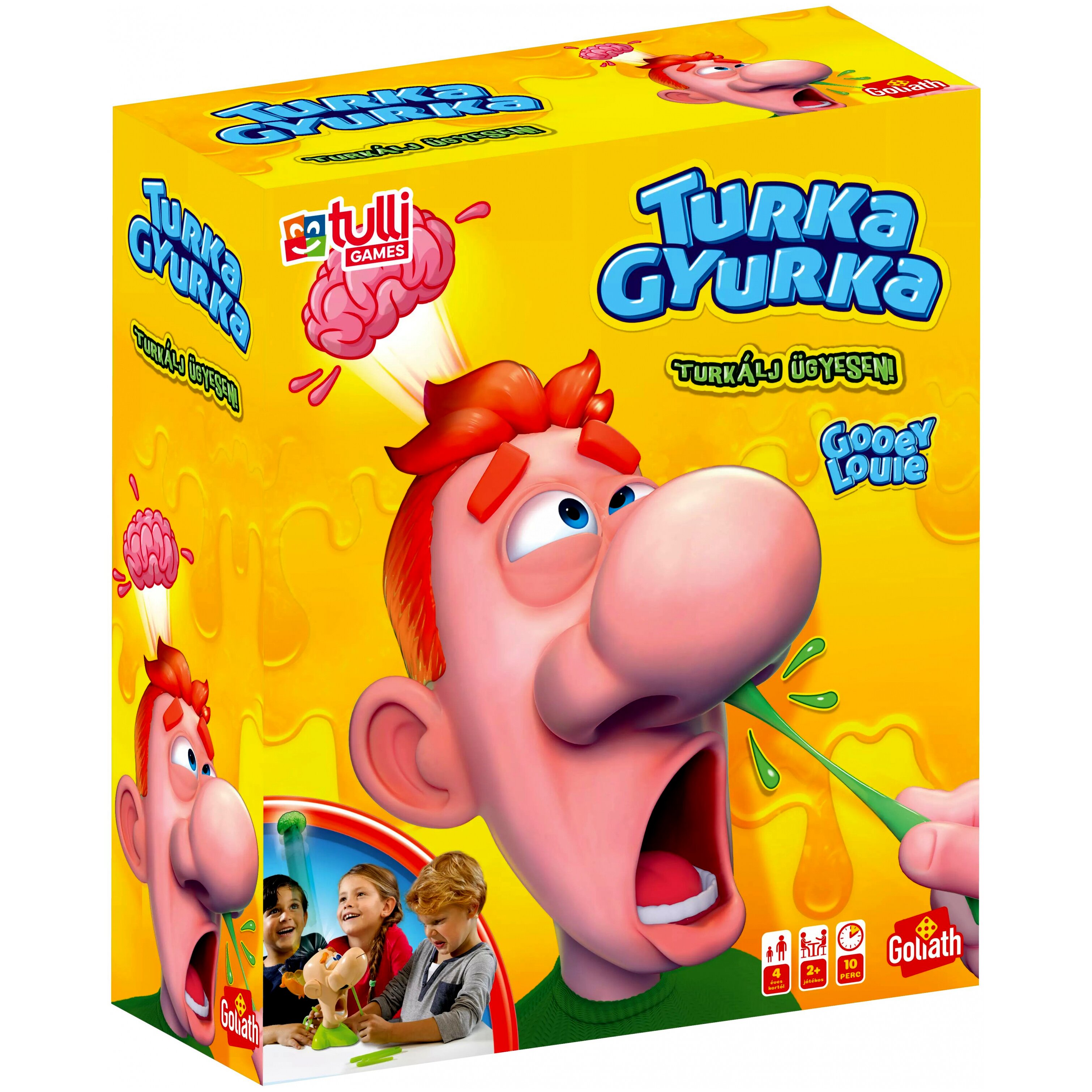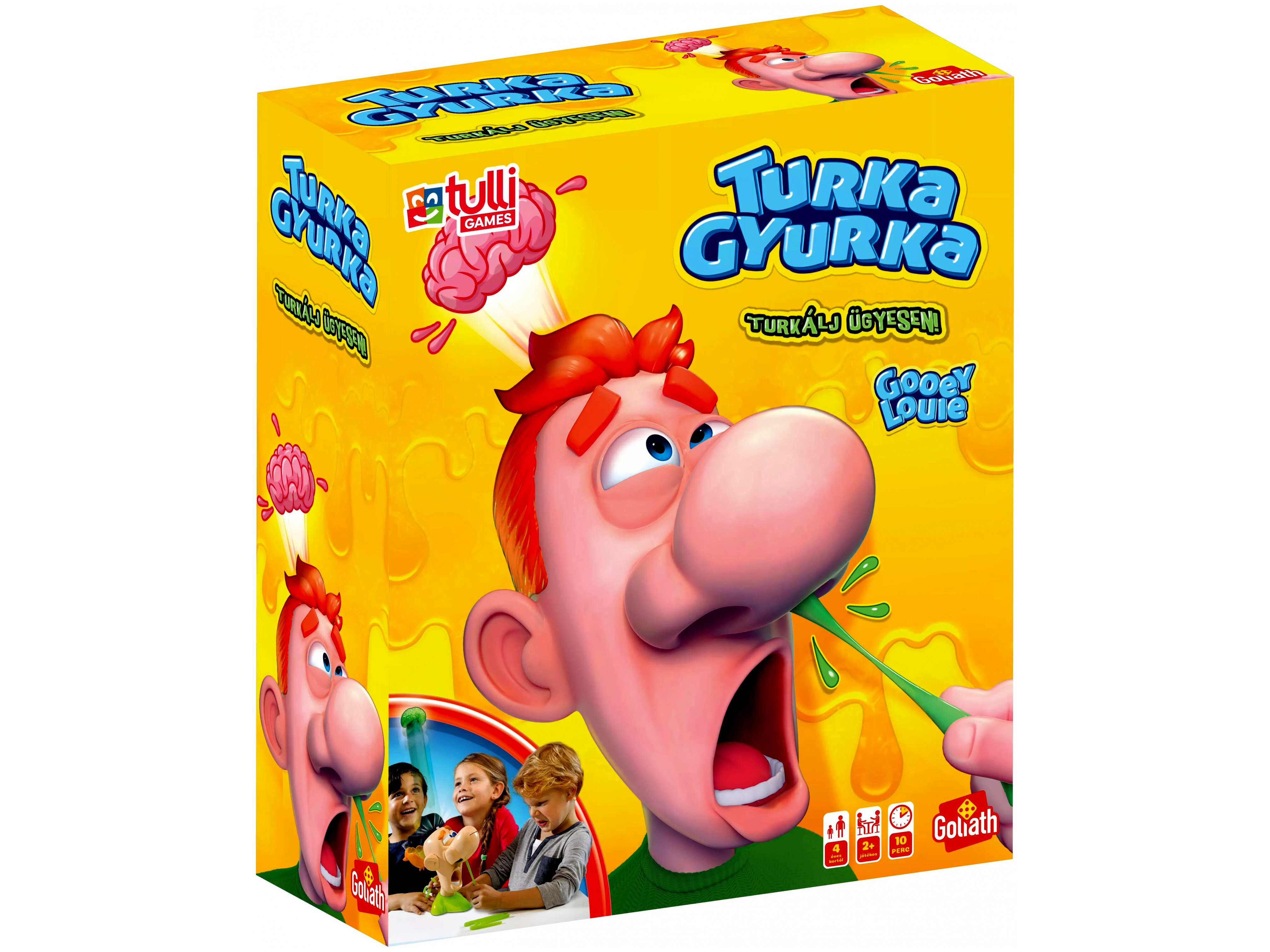 Készülj fel egy fergeteges nevetéssel teli estére a Turka Gyurka társasjátékkal, ahol a vidámság és az izgalom kéz a kézben jár! A játék célja egyszerű, de annál szórakoztatóbb: turkáld meg Gyurka orrát, és próbáld meg ügyesen kihúzni a pálcikákat – de vigyázz, mert ha rosszat választasz, jön a meglepetés! Gyurka agya szó szerint elszáll, és vele együtt a nevetés is garantáltan kitör!
