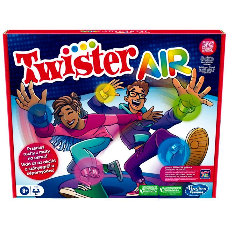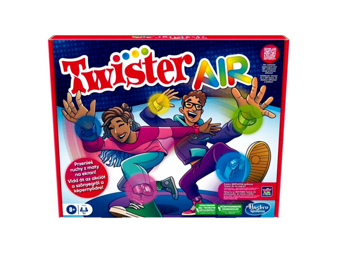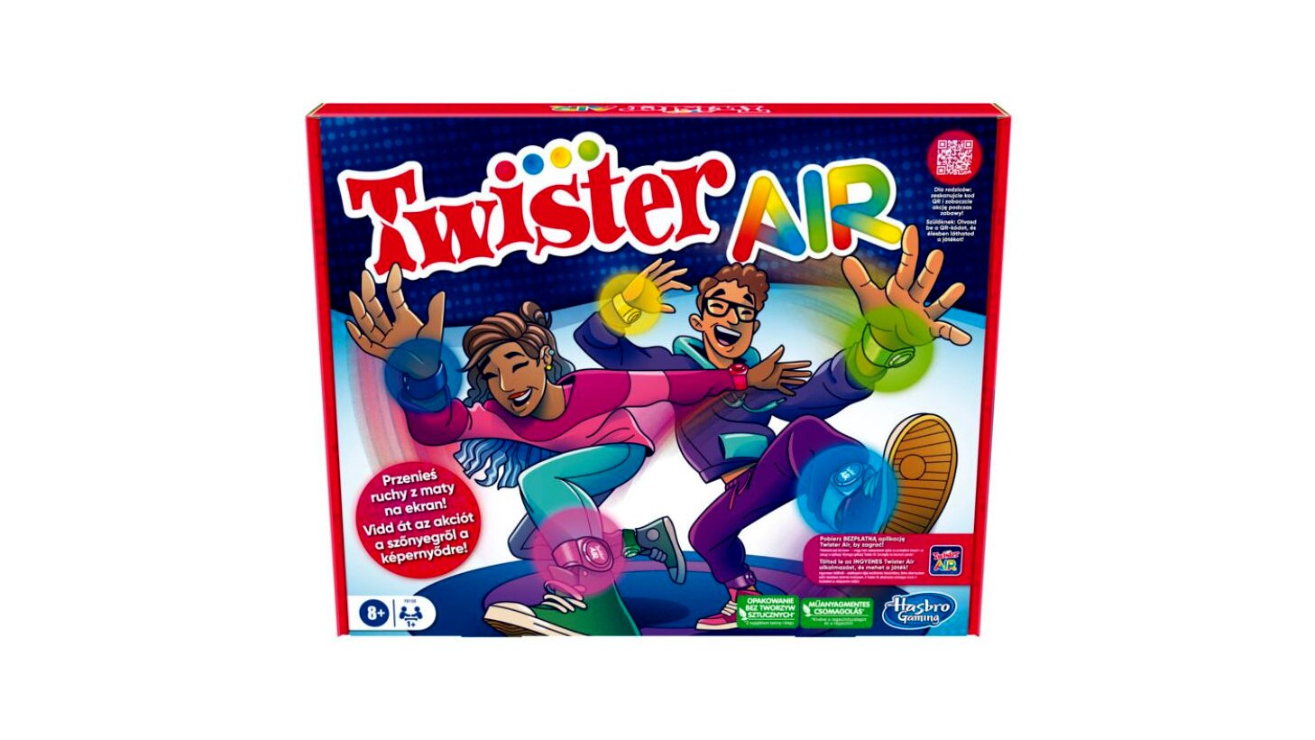 Megérkezett a Twister Air, amely új szintre, vagyis egyenesen a képernyőre emeli a sokak által kedvelt Twister társasjátékot. Csak le kell tölteni egy okoseszközre az ingyenes Twister Air alkalmazást, fel kell venni a színes boka- és csuklópántokat, csatlakoztatni őket az okoseszközhöz, majd amint megnyílik a virtuális játéktér, kiválasztani a játékosok számát és a játékmódot. Az okoseszköz stabilitását a mellékelt állvány biztosítja.A játék célja, hogy a játékosok a képernyőn megjelenő színes pontokkal összehangolják a csuklójuk és bokájuk pozícióját. Miközben szól a zene, a játékosoknak a képernyőn megjelenő pontoknak megfelelően kell mozogniuk. Aki a legtöbb pontot gyűjti össze, az nyeri meg a játékot. A játékosok visszanézhetik magukat a képernyőn, és elmenthetik legemlékezetesebb mozdulataikat, hogy később is feleleveníthessék azokat. Döntsétek meg egyéni rekordotokat, vívjatok párharcot, vagy mérkőzzetek meg barátaitokkal csapatban! Vicces, őrült és nyakatekert mutatványokra fel!