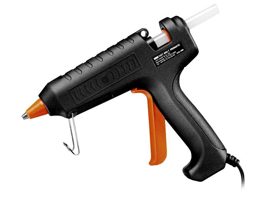 Au UHU Promatic Hot Melt ragasztópisztoly a nagy olvasztási teljesítményével ideális hobbi műhelyekbe és az összes háztartási javítgatási munkálatokhoz.