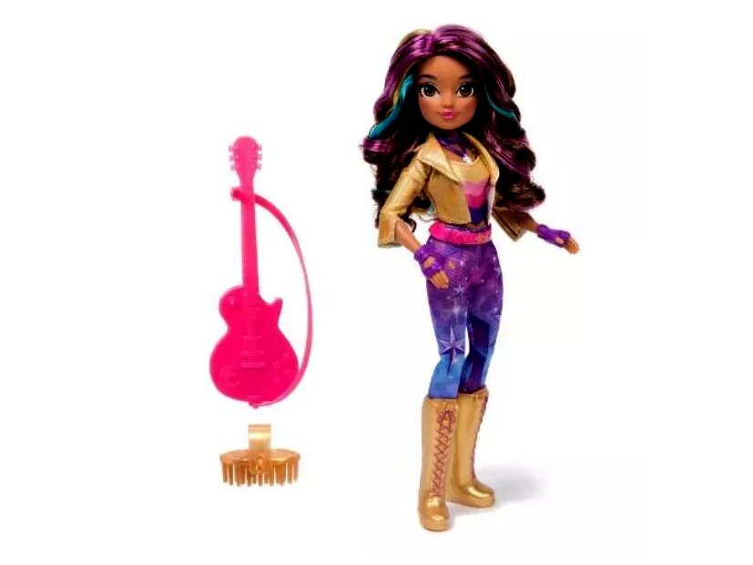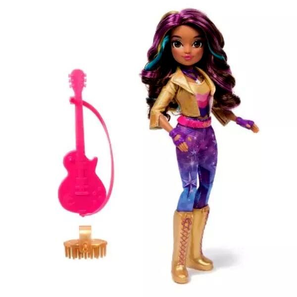 - Kiegészítők: Kalandvágyó megjelenését olyan kiegészítők fokozzák, mint a fűzős csizma, kesztyű, öv és nyaklánc. A baba segítségével a gyerekek eljátszhatják, ahogy Sophia a gitárjával mutatja meg tehetségét.