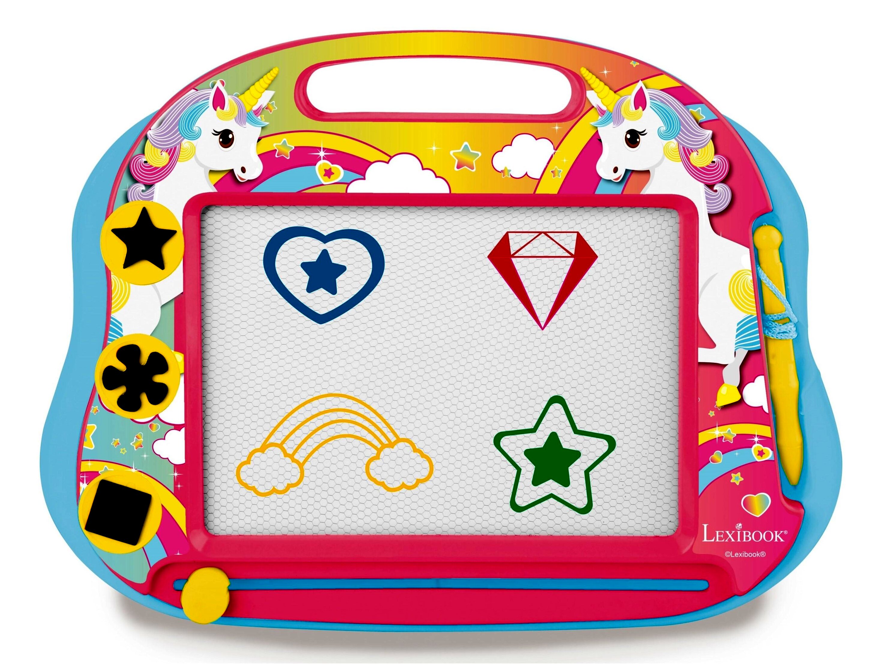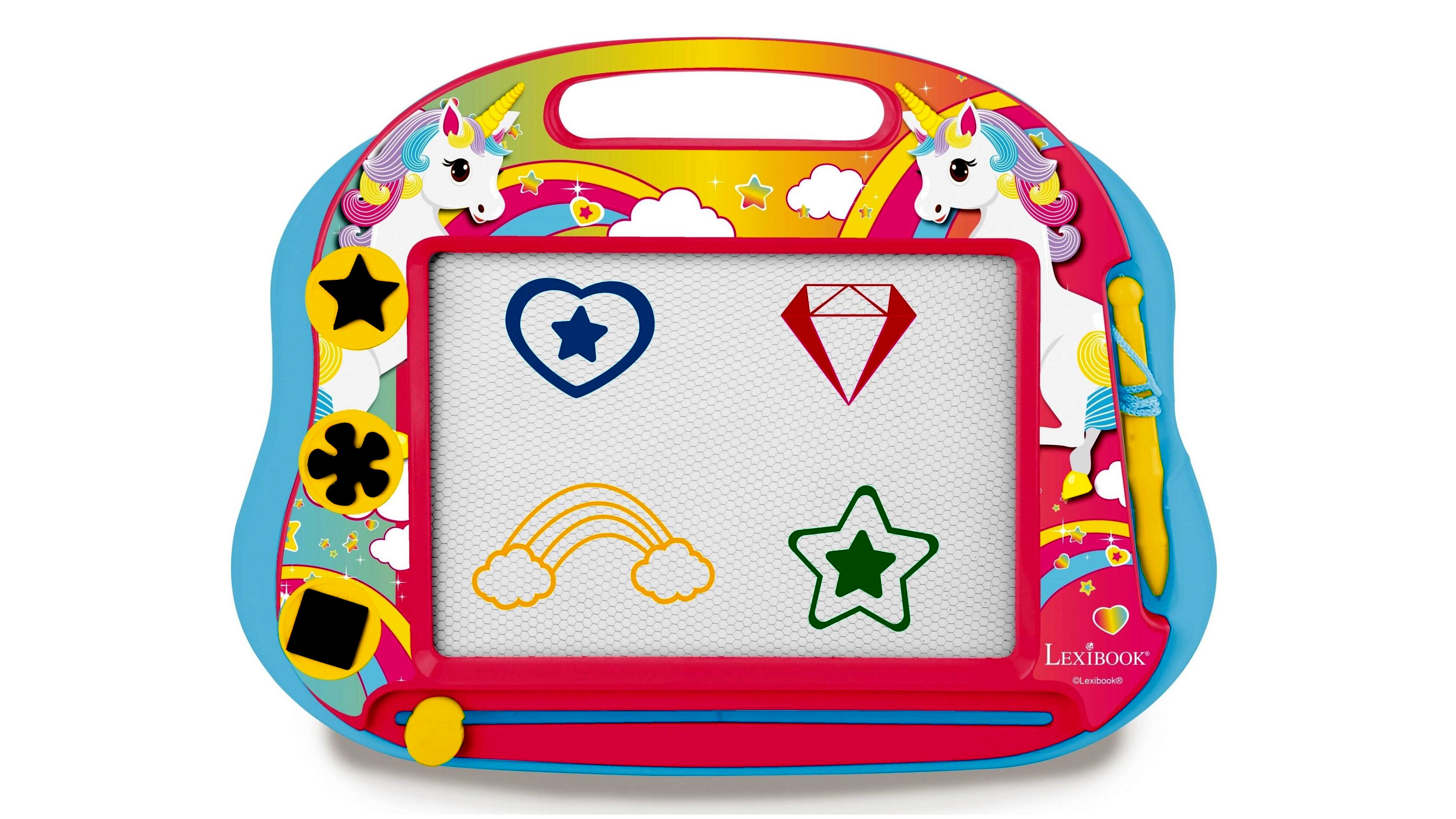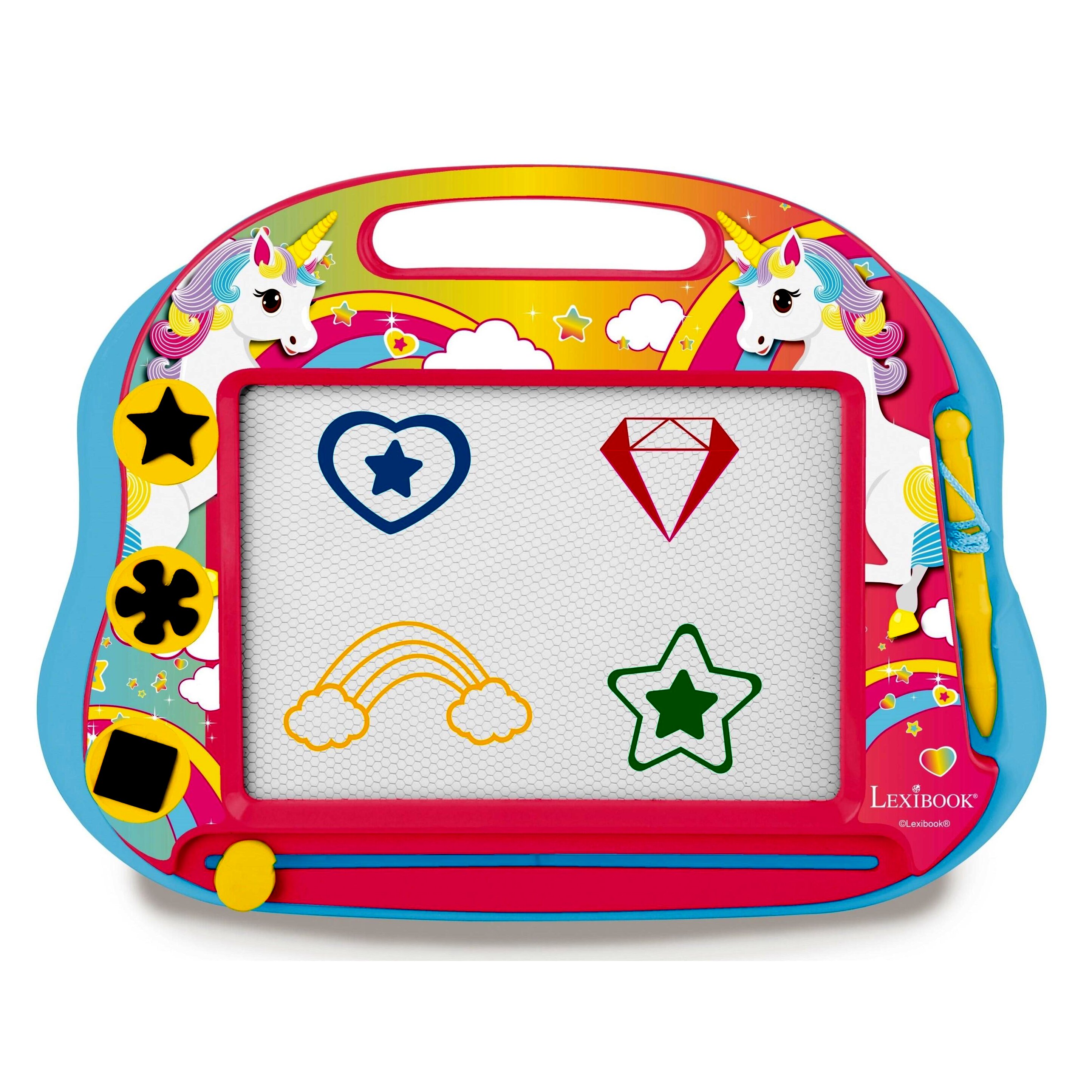 Ez a bájos, unikornis mintás mágneses rajztábla tökéletes választás minden kisgyermek számára, aki szeret rajzolni, firkálni és képzeletbeli világokat megalkotni. A többszínű rajzfelületnek és a praktikus kiegészítőknek köszönhetően a gyerekek játékos formában fejleszthetik kreativitásukat, finommotorikájukat és kézügyességüket.