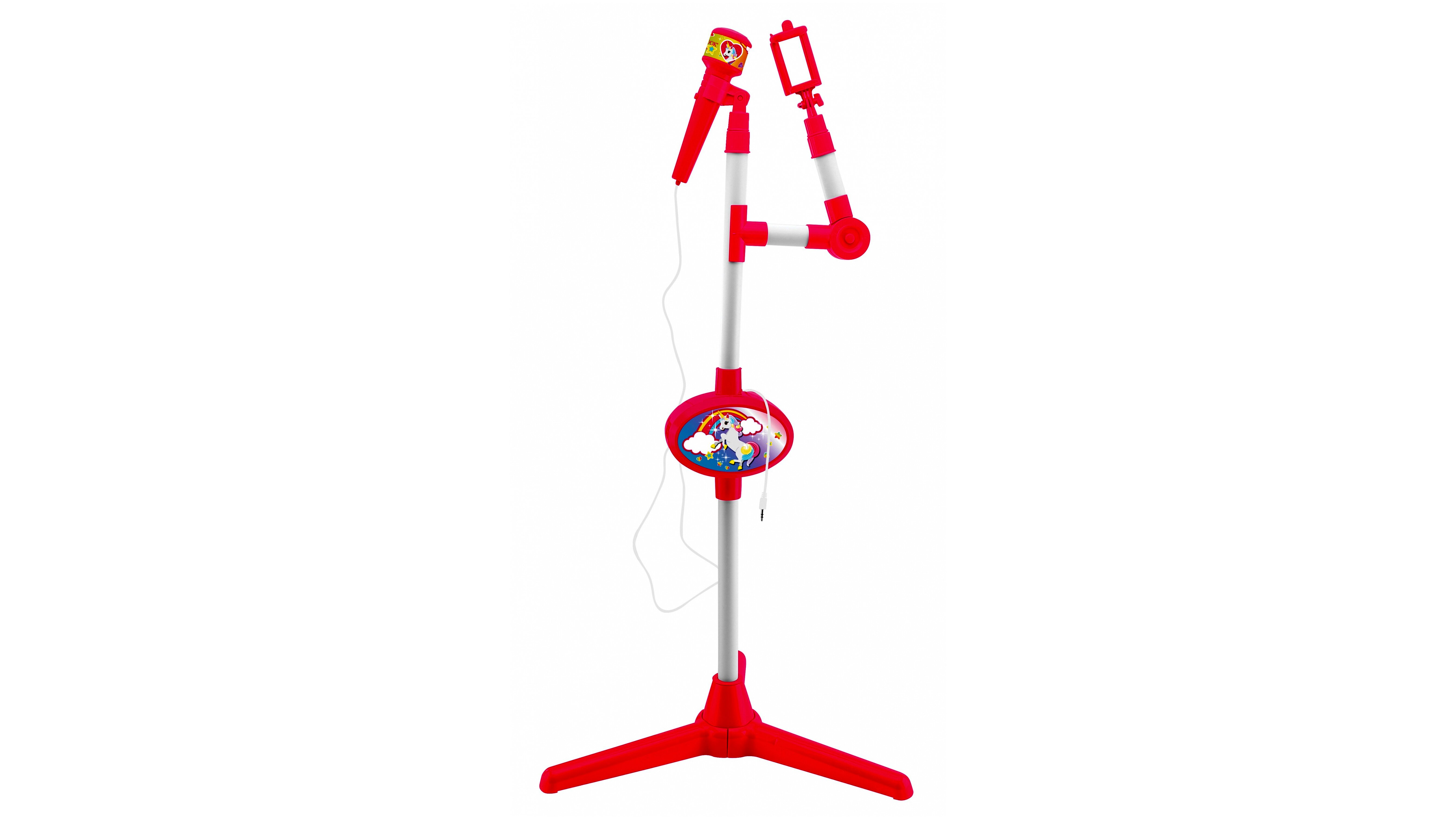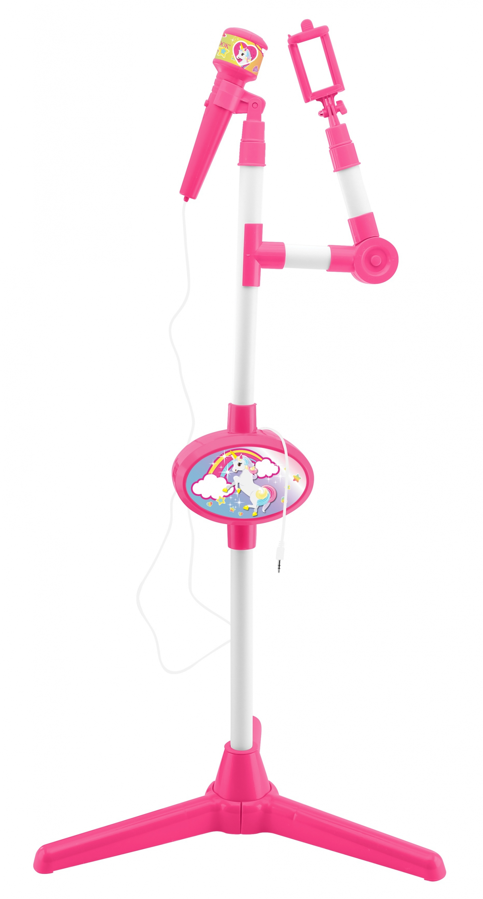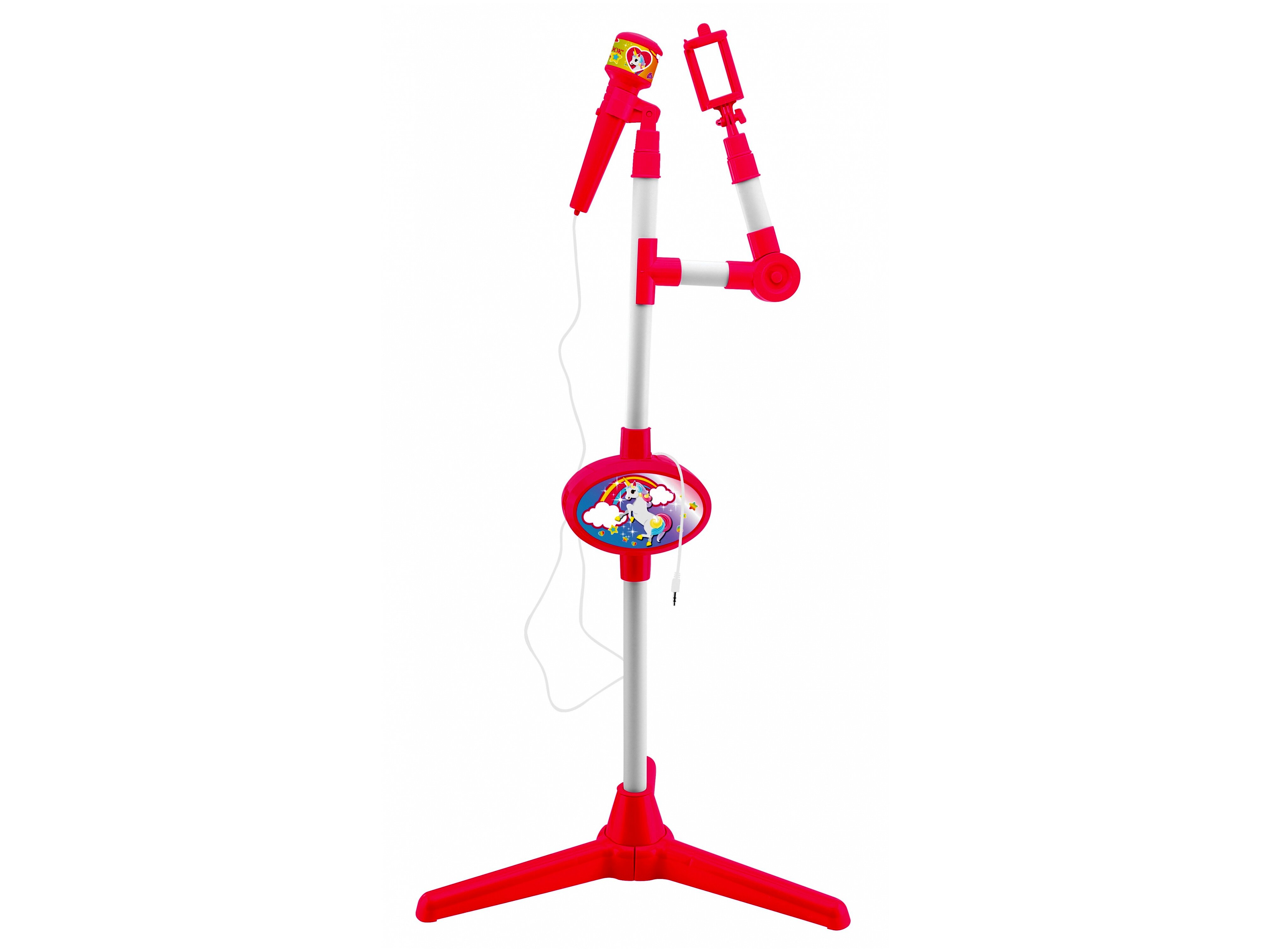 - Unikornis mikrofonállvány, nincs más teendő mint rögzíteni a mobiltelefont a praktikus tartóba, kiválasztani a kedvenc dalt és kezdődhet a zenés fellépés