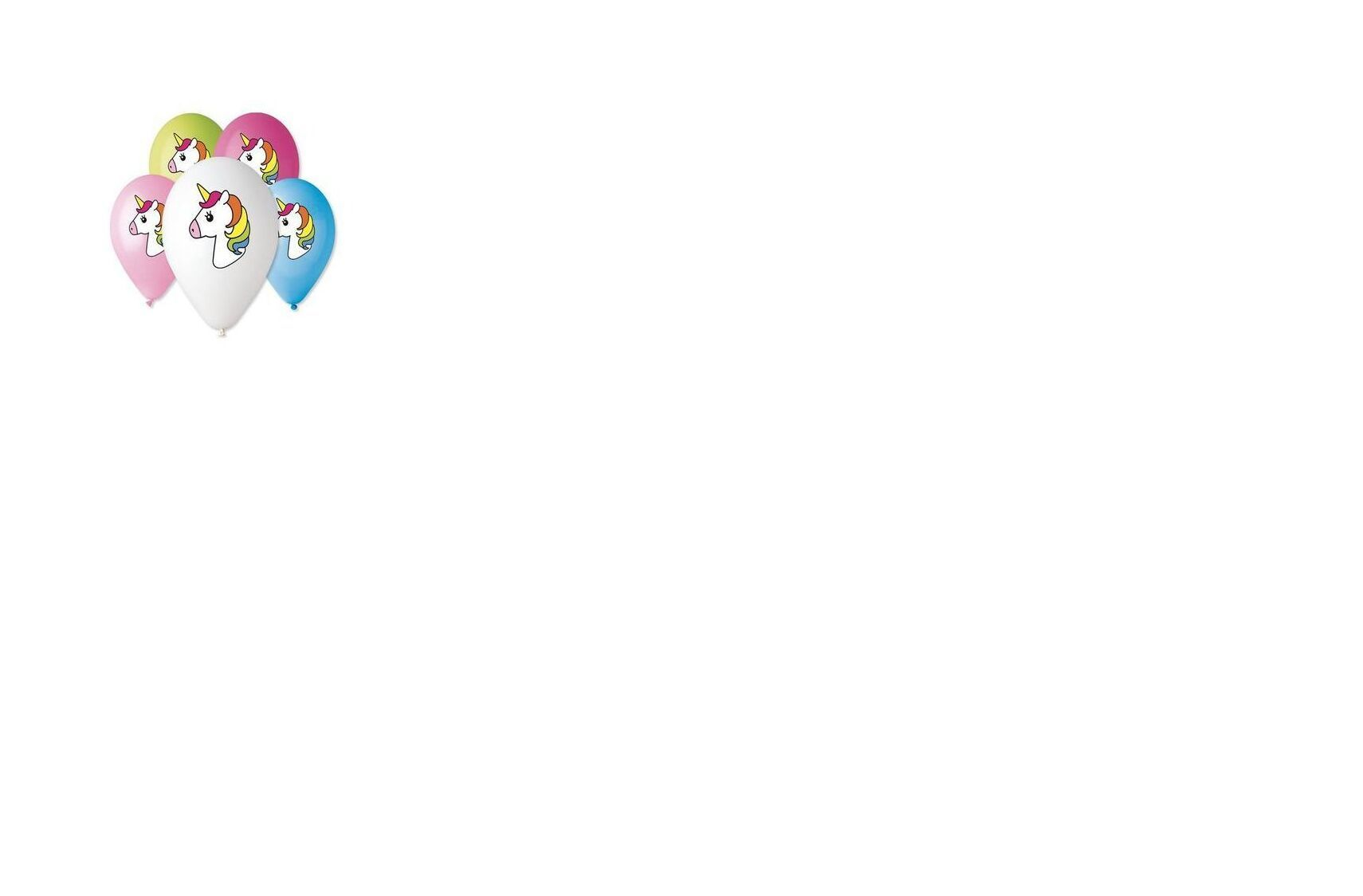 30 cm-es, unikornis fej mintás lufi 5 darabos csomagban.