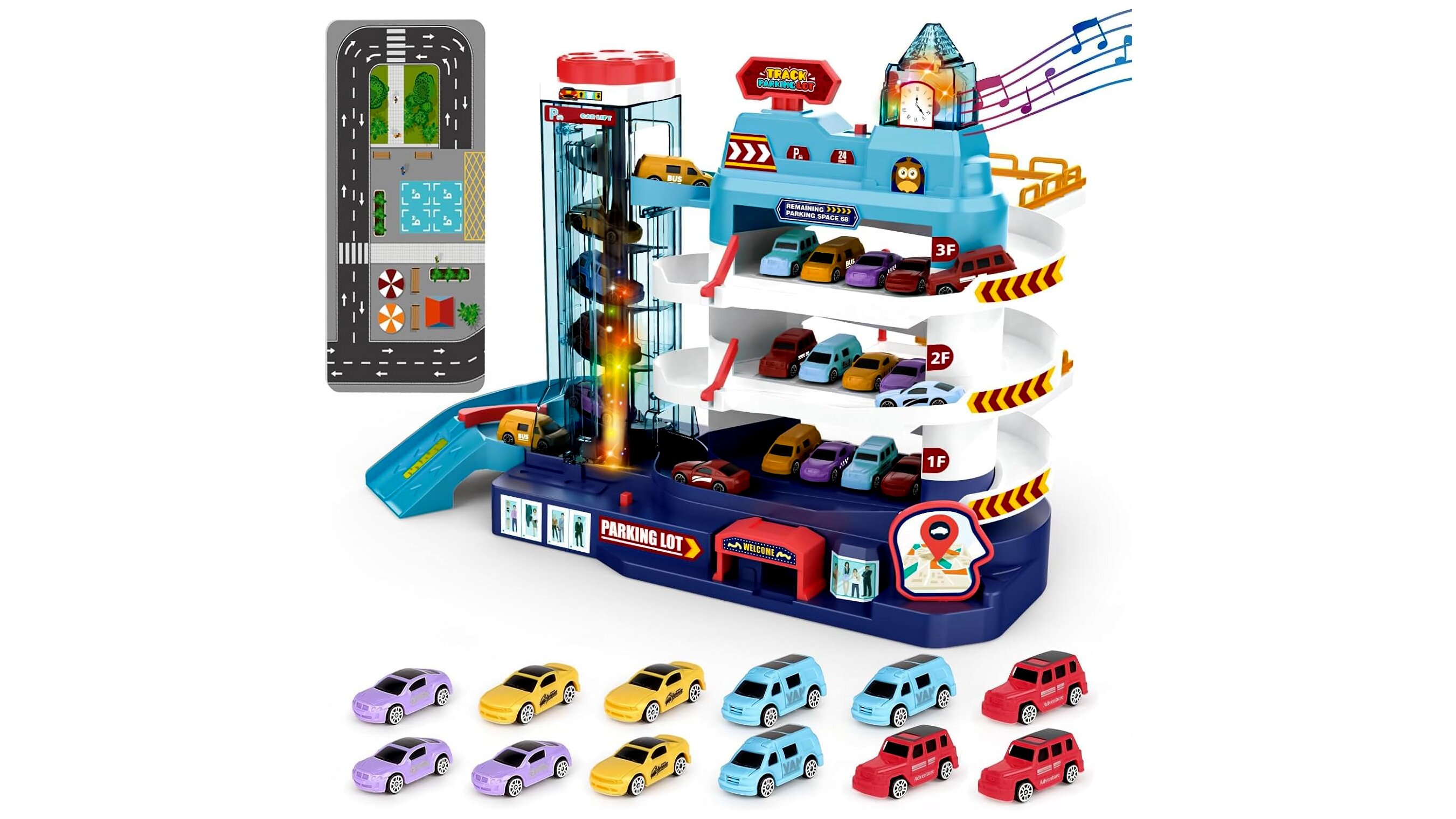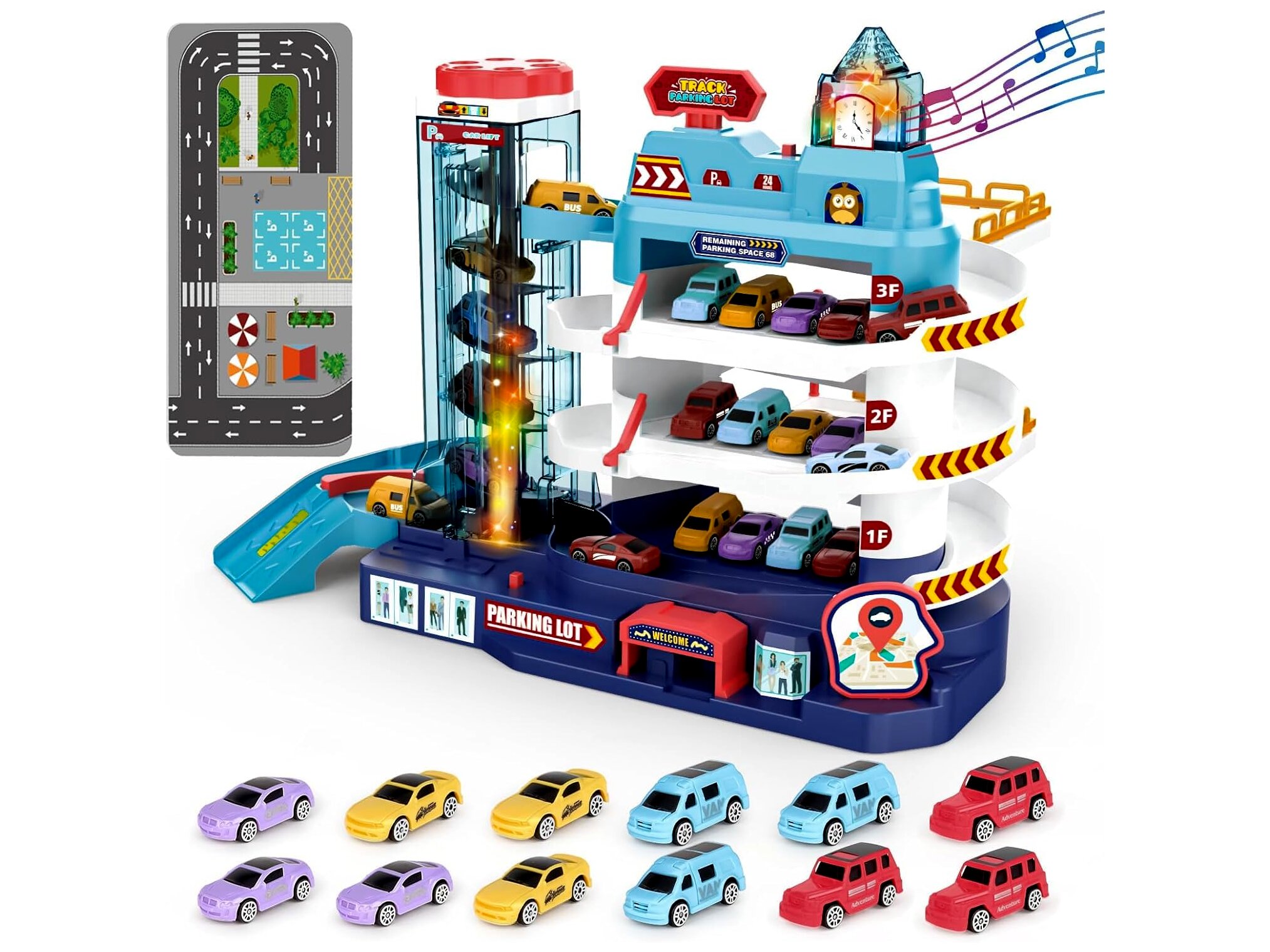 Nincs is annál izgalmasabb, mint megtalálni egy kisautó számára a legmegfelelőbb helyet egy városi parkolóházban. Ez az óriási, 46 cm hosszú, 4 szintes parkolóház 20 autó befogadására alkalmas.A parkolóházhoz mellékelt utcai helyszínről könnyű benavigálni az épületbe az útjelzéseknek köszönhetően. Bent a parkolóházban 360 fokos körkörös pályán haladhatnak az autók a szabad sávváltás érdekében. A játék egyik különlegessége a forgólift, amely elektronikusan, vagy kézzel is működtethető.