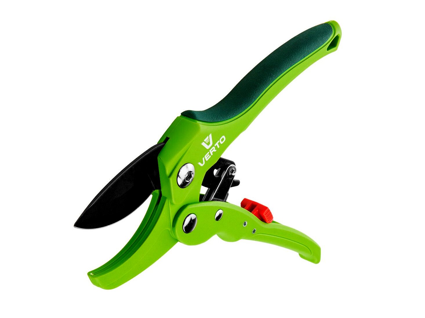VERTO Vágóüllős kerti metszőolló (cikkszám 15G205) hossza 190 mm és a vágási átmérő max. 20 mm. Ágak és cserjék metszésére használható. Az élt teflon bevonat borítja, védve a korróziótól. Az élek blokádja megakadályozza a véletlenszerű kinyitást. A metszőolló vágást megkönnyítő reteszelő mechanizmussal rendelkezik. A műanyagból készült ergonomikus és könnyű fogantyú csúszásgátlóval van ellátva, ami biztosítja a munkavégzés biztonságát és komfortját.