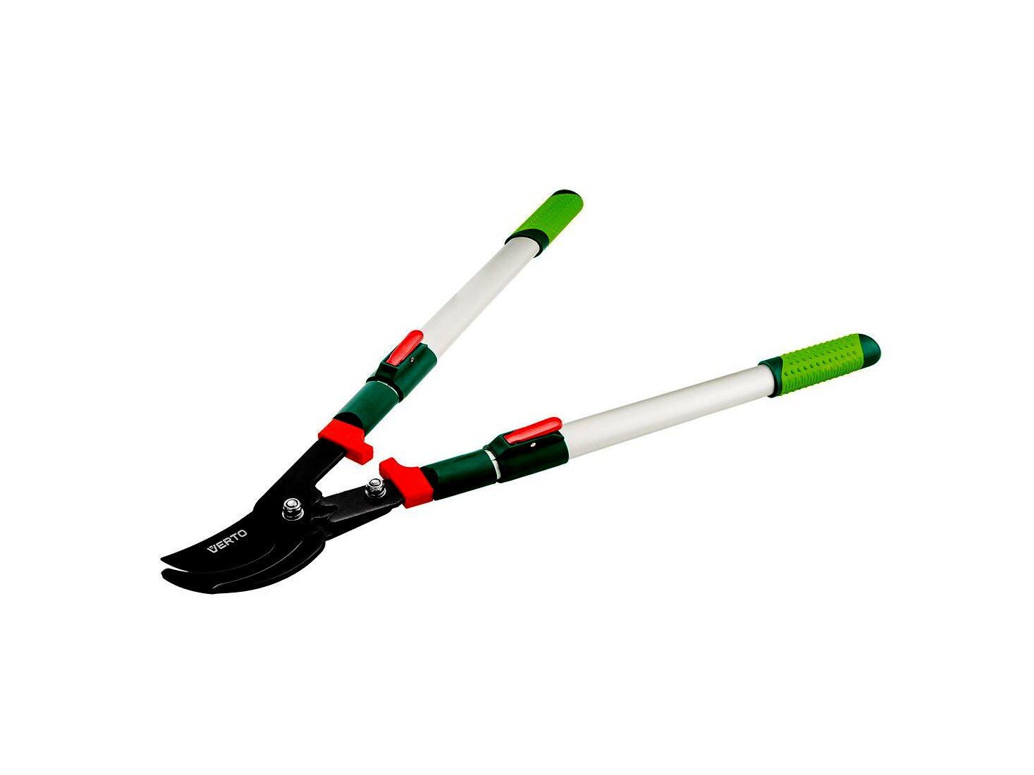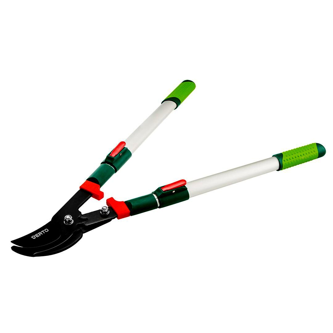 VERTO Univerzális teleszkópos ágvágó olló (cikkszám 15G253) hossza 700 - 1000 mm és a vágási átmérő max. 35 mm. By-pass típusú metszőolló, vékonyabb és vastagabb ágak metszésére használható. 96 mm hosszú éleit teflon bevonat borítja, védve a korróziótól. További előnye a vágáshoz szükséges erőt 20 % értékkel csökkentő erőátviteli szerkezet. A teleszkópos nyél növeli a munkavégzés távolságát. Az ergonomikus fogantyú csúszásgátlóval van ellátva, ami növeli a munkavégzés biztonságát és komfortját.