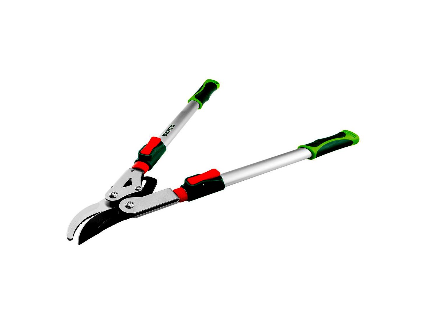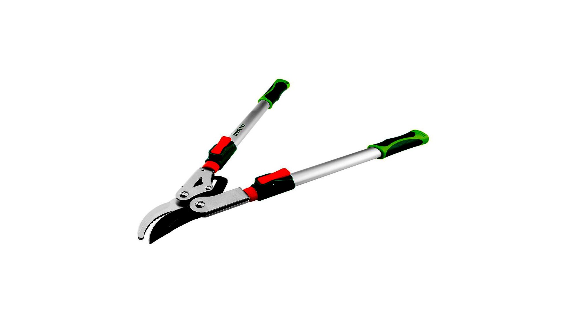 VERTO Univerzális teleszkópos ágvágó olló (cikkszám 15G258) hossza 670 - 970 mm és a vágási átmérő max. 45 mm. By-pass típusú metszőolló, vékonyabb és vastagabb ágak metszésére használható. Az élt teflon bevonat borítja, védve a korróziótól. További előnye a vágáshoz szükséges erőt 30% értékkel csökkentő erőátviteli szerkezet, valamint az alumínium nyél optimalizálja a szerszám súlyát. A teleszkópos nyél növeli a munkavégzés távolságát. Az ergonomikus fogantyú csúszásgátlóval van ellátva, ami növeli a munkavégzés biztonságát és komfortját.