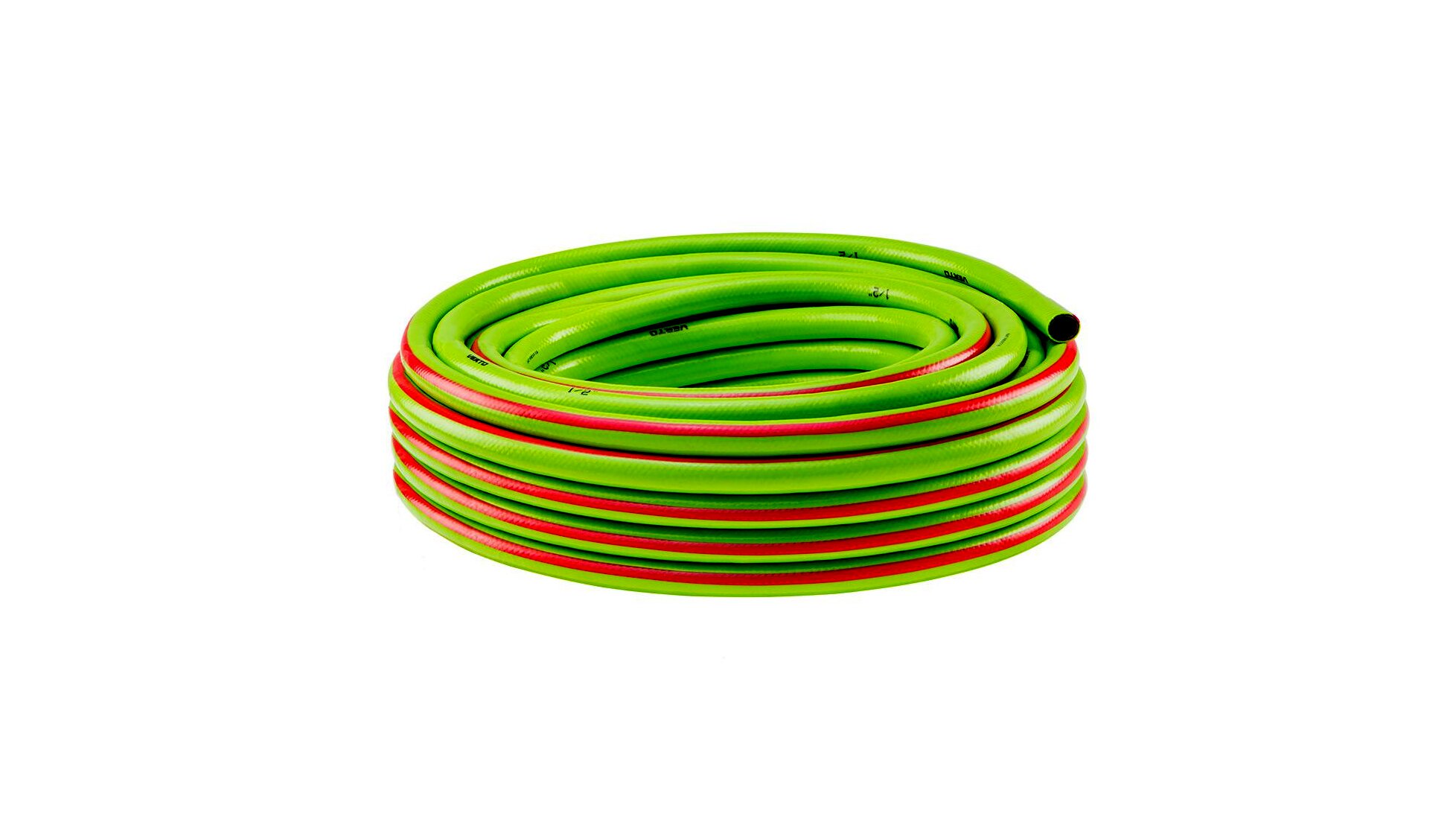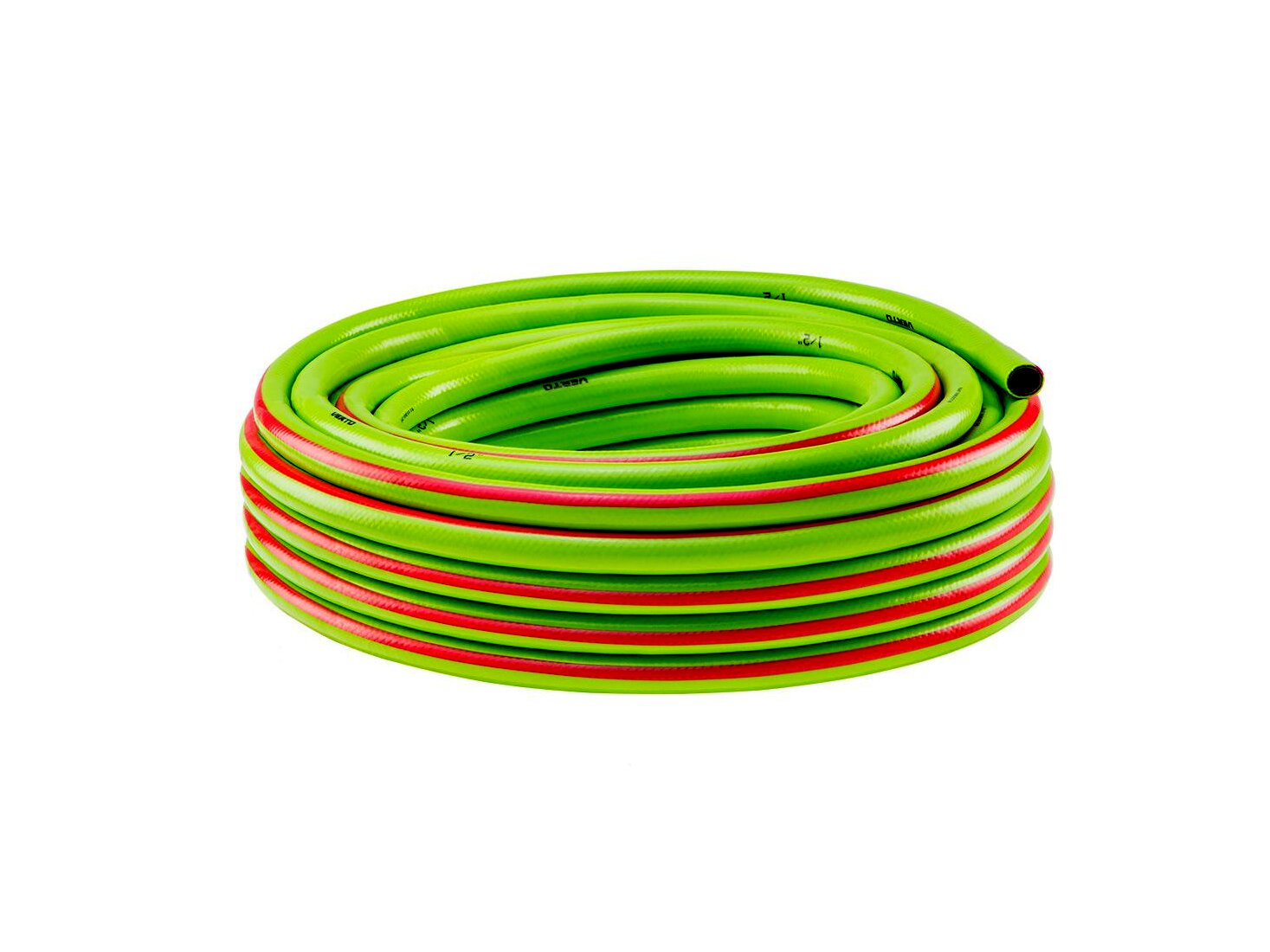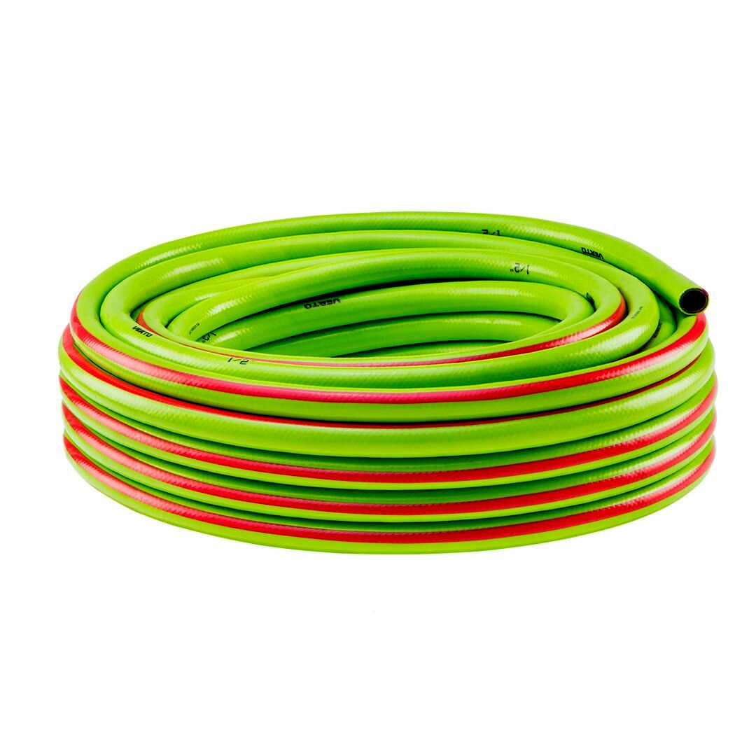 Verto Professional 3 rétegű kerti tömlő. A káros napsugárzás elleni védelem és az alga lerakódás gátló rendszer lehetővé teszi a hosszú idejű hatékony és zavarmentes munkavégzést. A kerti tömlő lehetővé teszi 25 bar nyomású víz áramlását. A tömlő megőrzi használati paramétereit - 10 és + 45°C közötti hőmérsékleten.