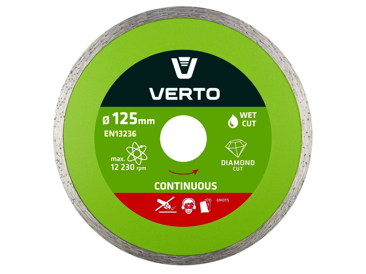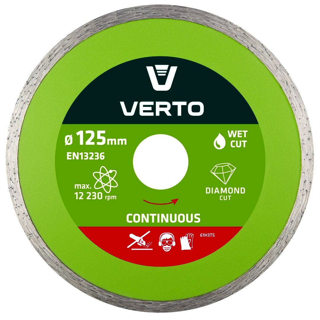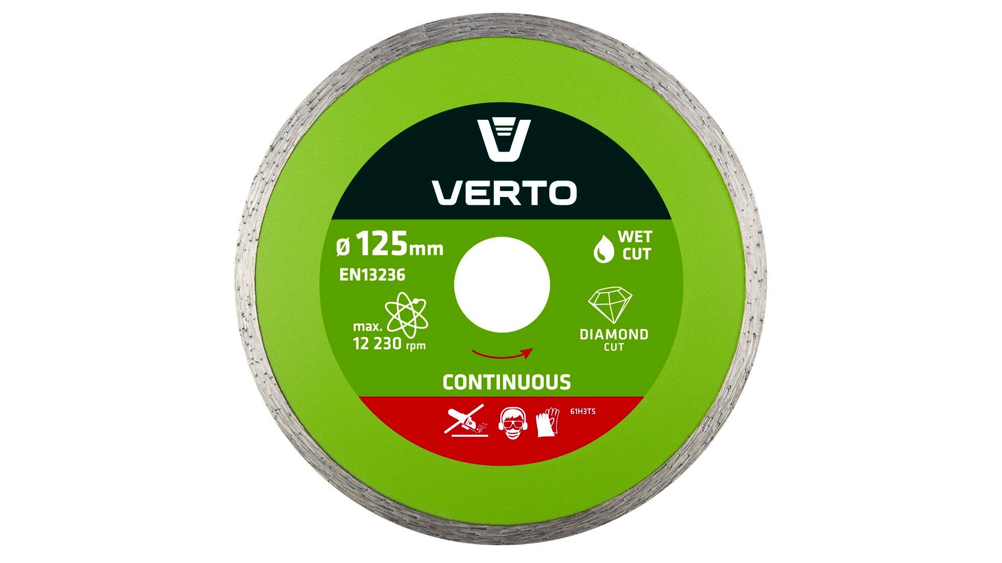 A VERTO folyamatos élű gyémánttárcsa kerámia, pl. terrakotta, gress, gránit, márvány precíz vágására szolgál.Élkiképzése miatt a vágáskor nem töredezik az anyag széle. A VERTO márka ajánlata elektromos kéziszerszámokat és tartozékokat tartalmaz az ezermesterek számára.