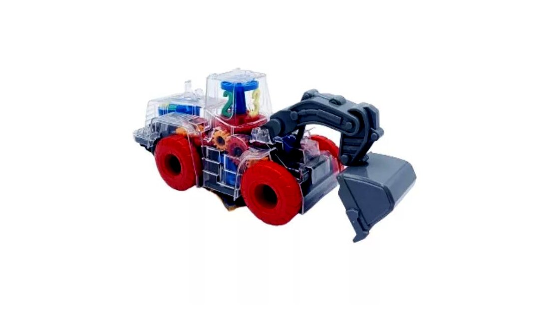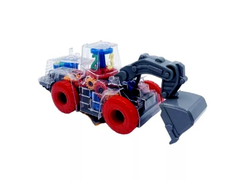 Munkagép átlátszó dizájnnal, amely beindítás után fény- és hanghatásokkal szórakoztatja a gyerekeket. Kialakítása lehetővé teszi, hogy a munkagép belseje is látható legyen.