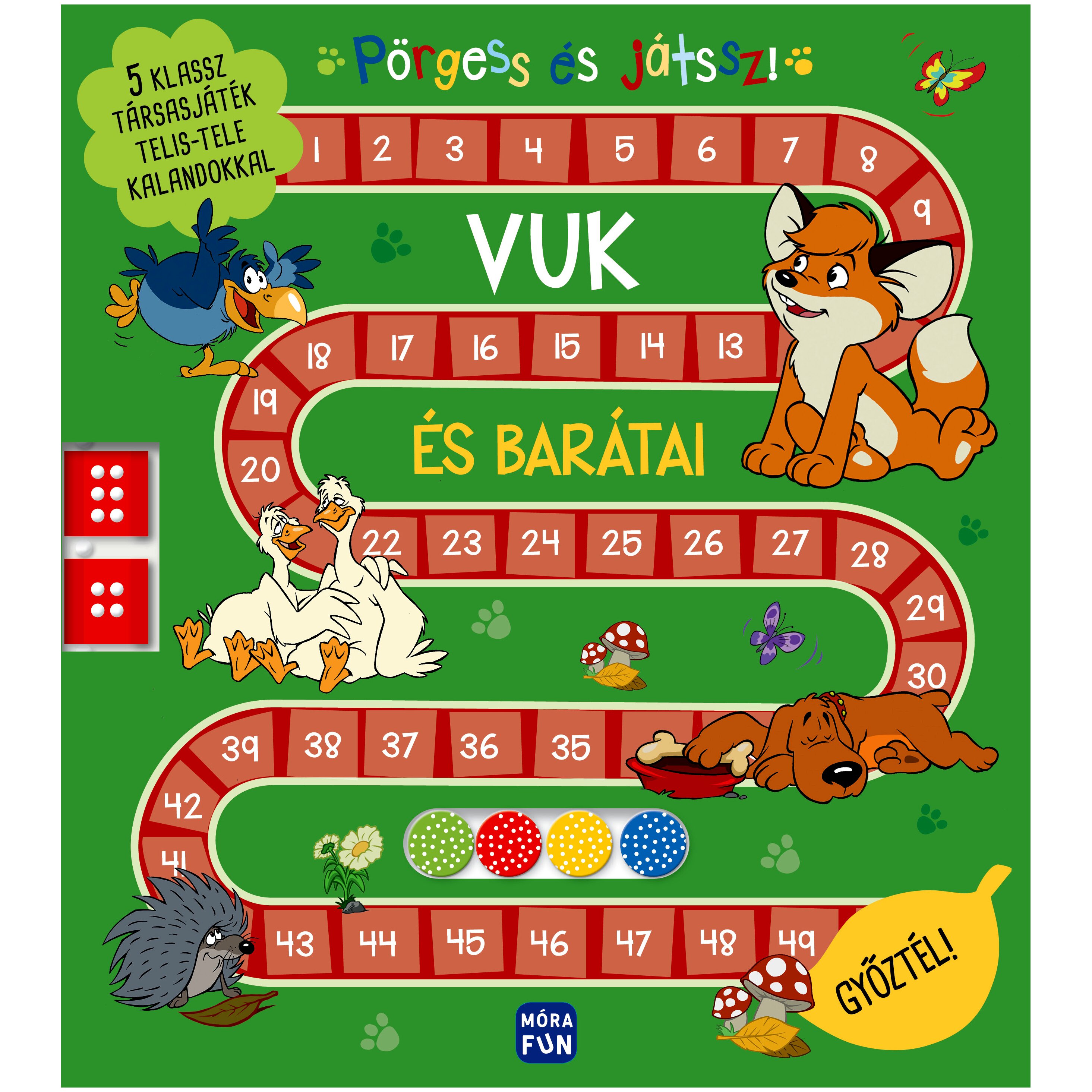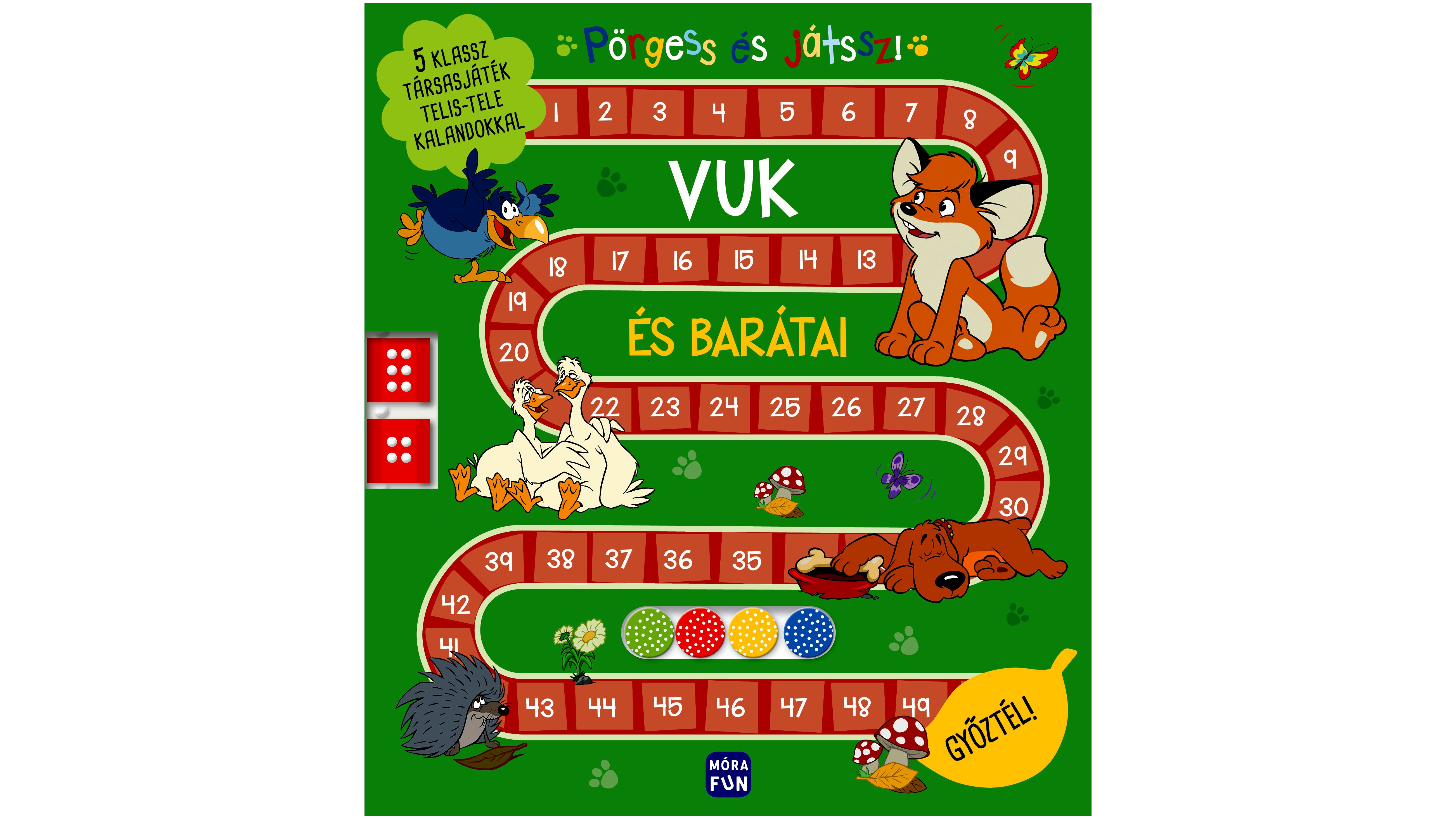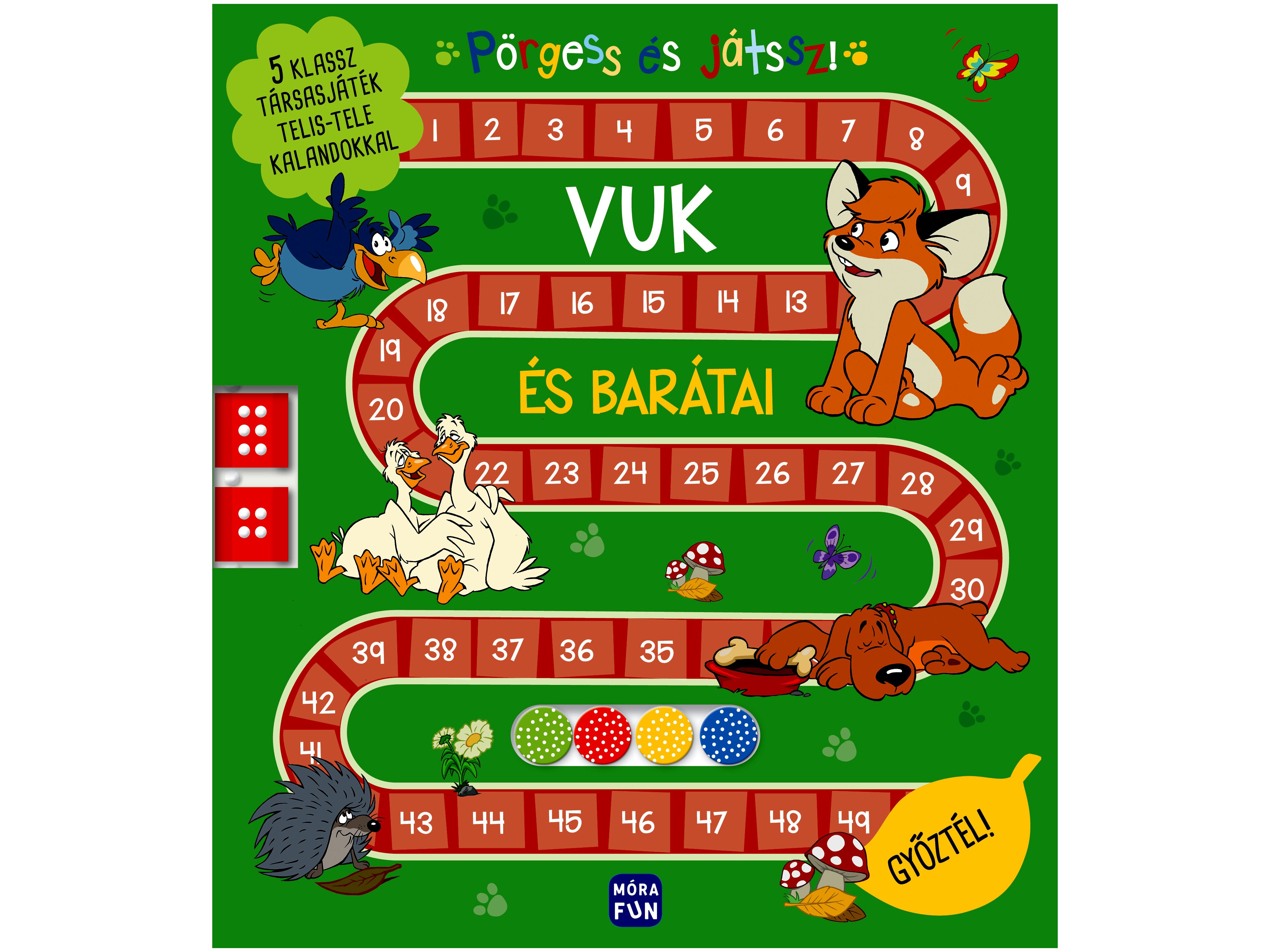 Ki ne ismerné a klasszikus rajzfilmet a kis cuki, ravasz narancssárga színű rókáról? A Móra egy igen izgalmas könyvet hozott el minden kis kiváncsi gyerkőc számára: 5 izgalmas társasjátékot, melyekkel otthon vagy akár útközben is játszhattok. Fedezzétek fel az erdőt, terelgessetek libákat vagy keressétek meg a Simabőrű házát! A játékok közben gyerkőcöd megismerheti Vukot és barátait, valamint az erdő lakóit, és átélheti velük a kalandokat. Pörgessetek és játsszatok!