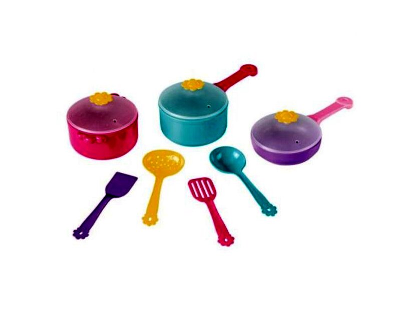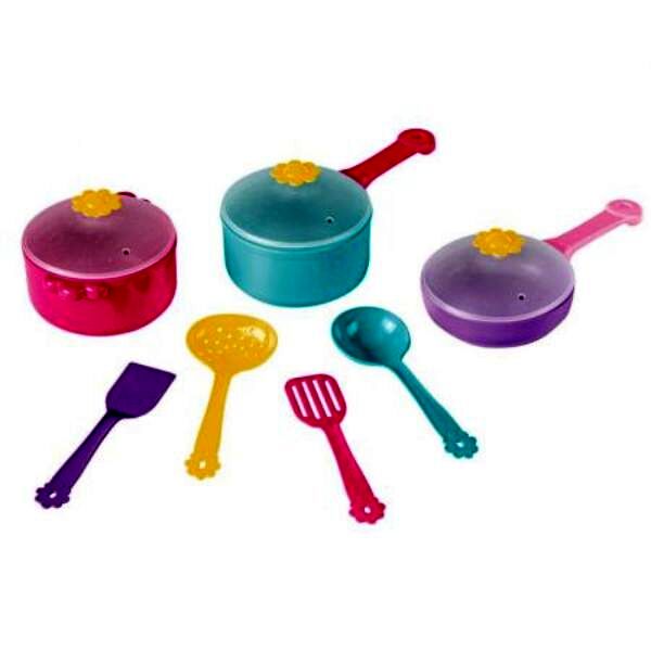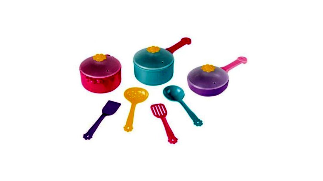 A Wader magas minőségű edénykészlete tökéletes kiegészítője lesz a gyerekkonyhának. A készlet 11 darabból áll: 1 db fedős serpenyő, 2 db fedős fazék és 4 db konyhai kellék (lapát, szűrőedény).A készlet elemei gondos kidolgozásúak és biztonságosan használhatók. Az edények élelmiszerrel való érintkezésre engedélyezettek, mikrohullámú sütőben használhatók és mosogatógépben is moshatók.