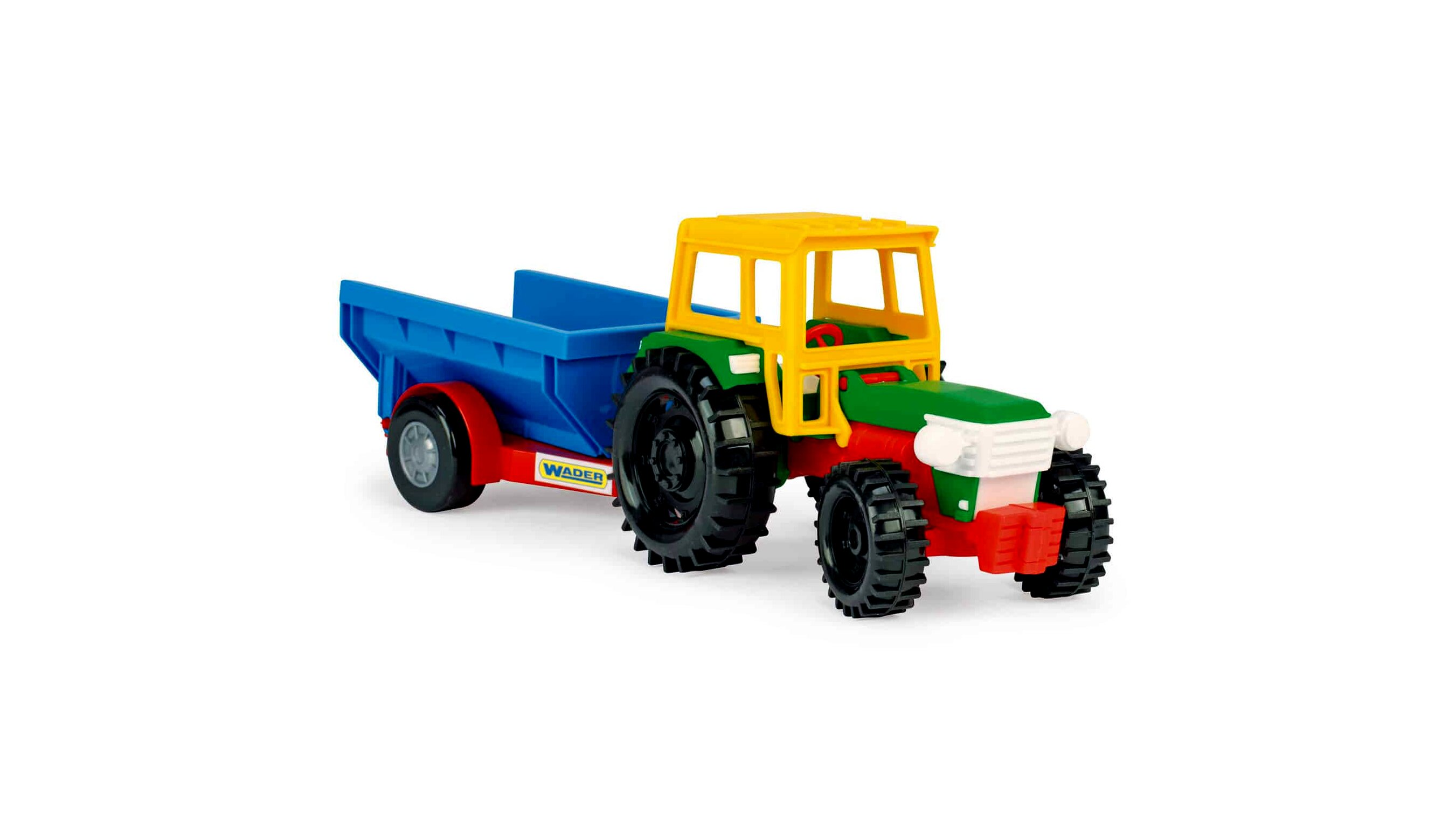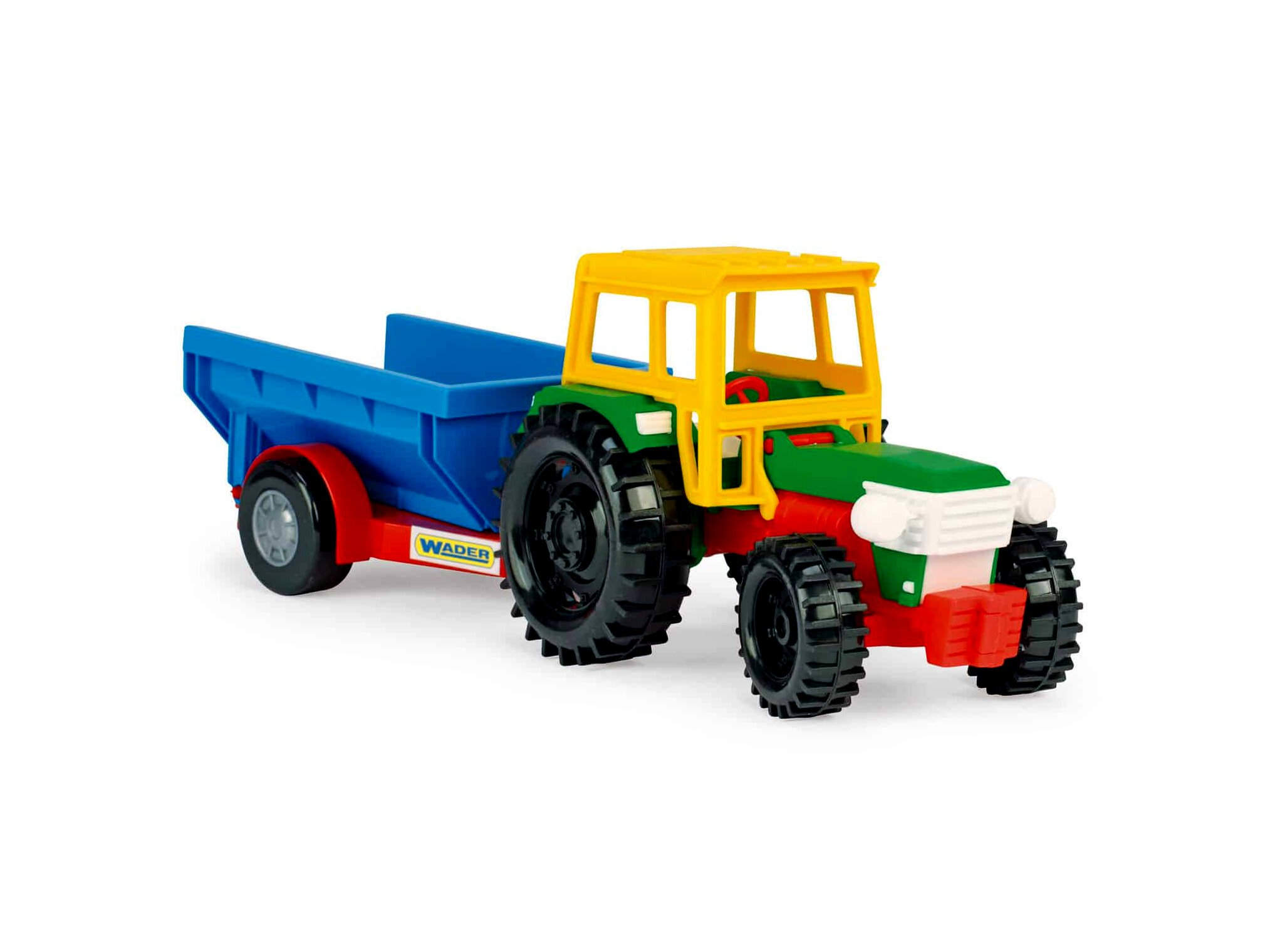 Közepes méretű utánfutós Wader traktor, billenős utánfutóval.
