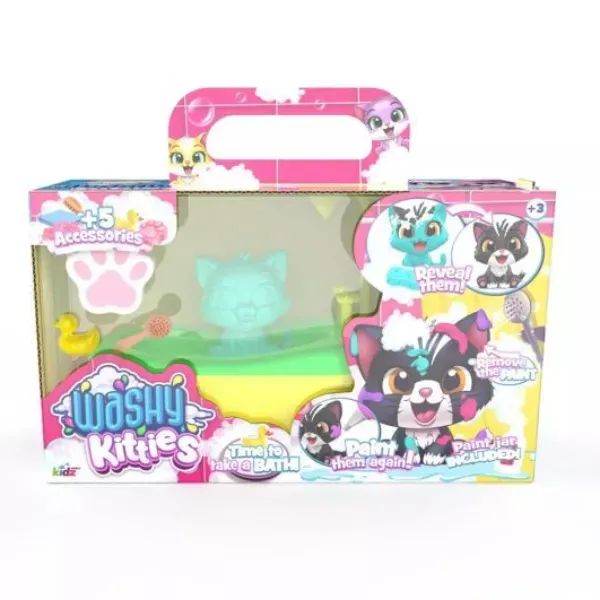 A Washy Friends Color Reveal pancsoló cicusok fürdőkáddal játékszett különleges élményt nyújt a gyerekeknek, miközben gondoskodhatnak a kis cicáról. A cica "sáros" bundával érkezik, és csak fürdetés után derül ki, milyen színű és mintájú bundát rejt.Jellemzők: