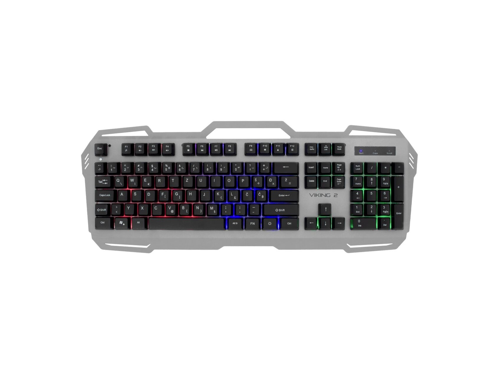 White Shark VIKING-2, GK-1924HU vezetékes magyar gamer billentyűzet, kiváló minőségű 105 gombos membrános kivitel, fém borítás, középen egy mobil telefon tartóval.