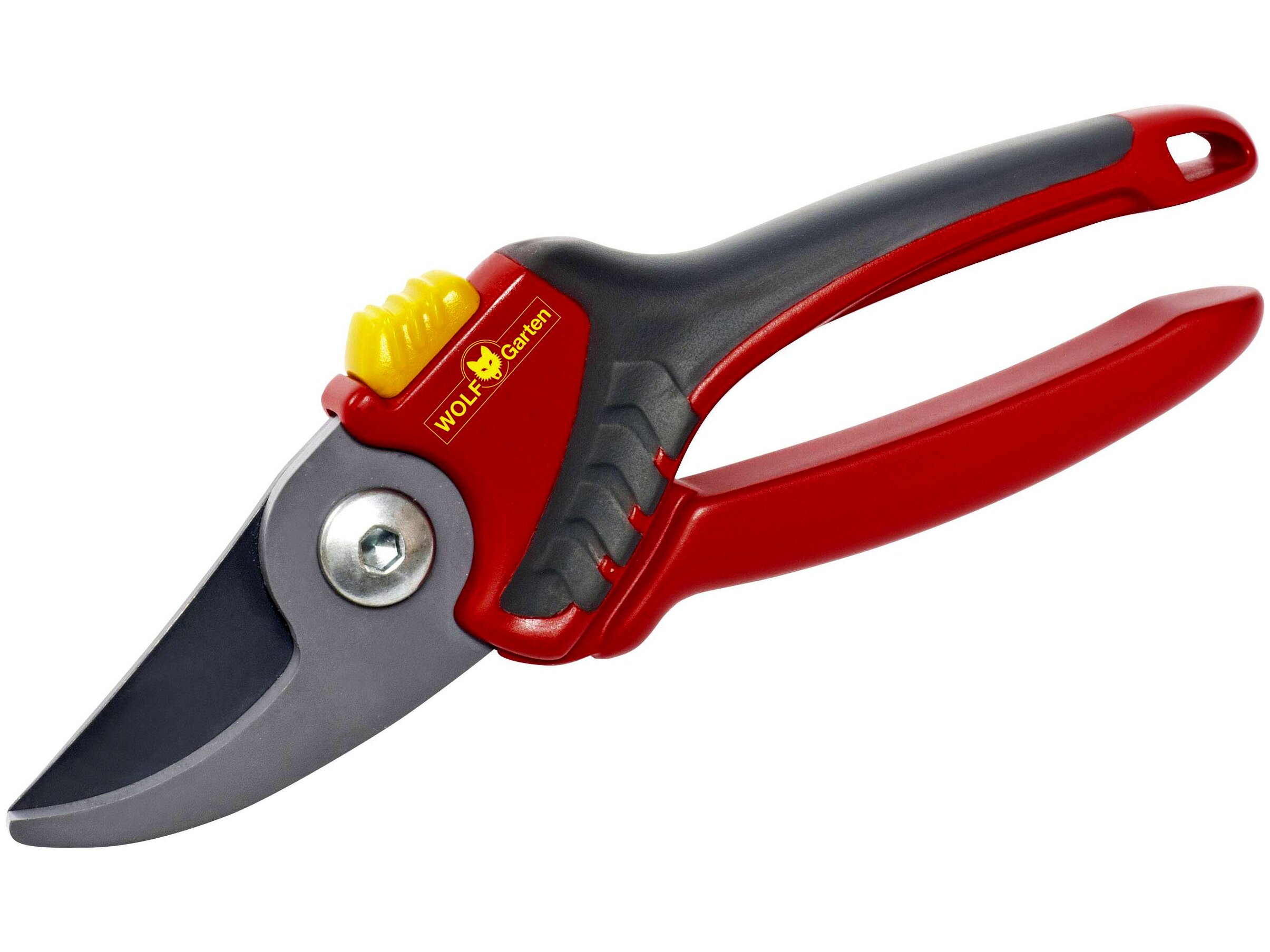 A Wolf-Garten kettős vágóélű metszőolló vágásátmérője 22 mm, vágási szöge pedig 30 fokos. A penge feszességét Ön állíthatja be, tetszés szerint.