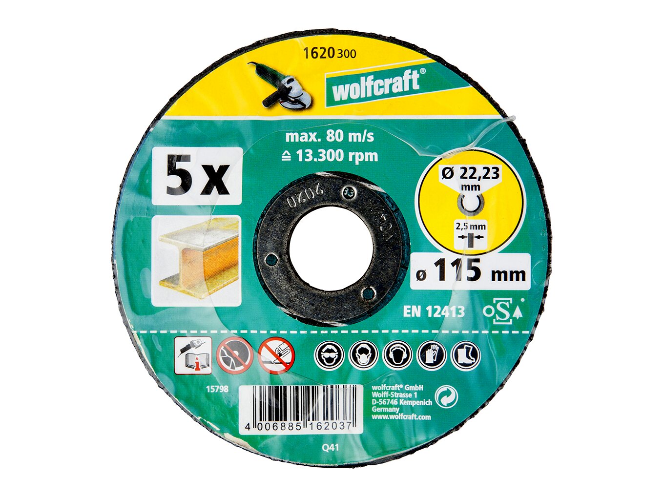 Wolfcraft 1620 hajlított fém vágókorong, 115mm, 5 db