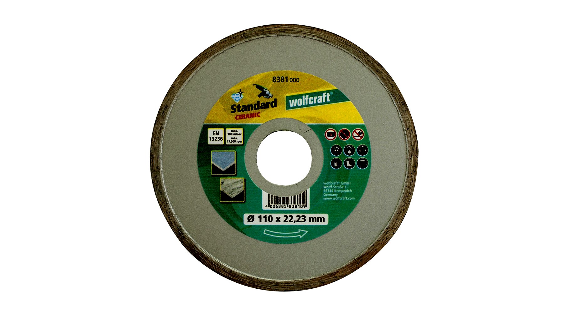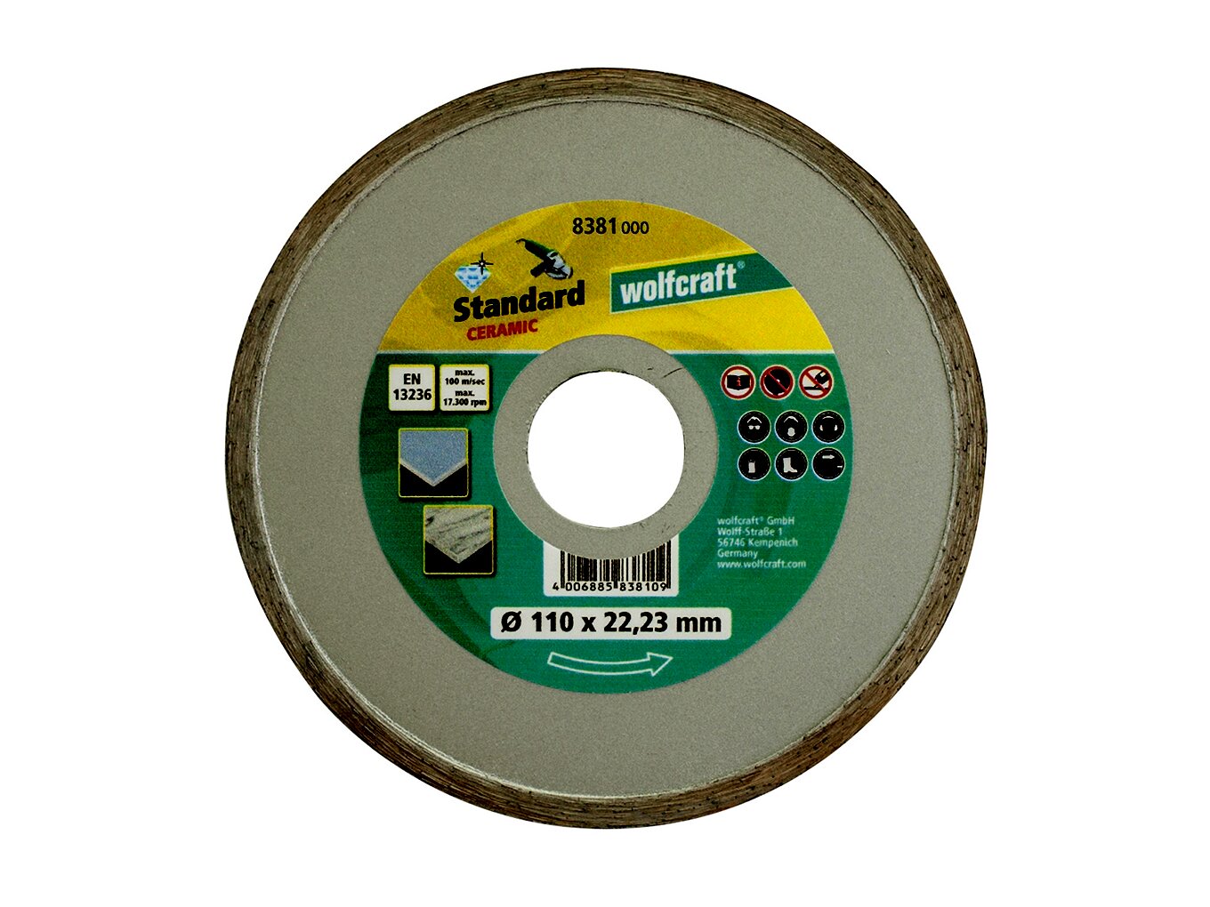 Wolfcraft 8381 Standard Ceramic gyémánt vágókorong, 110mm