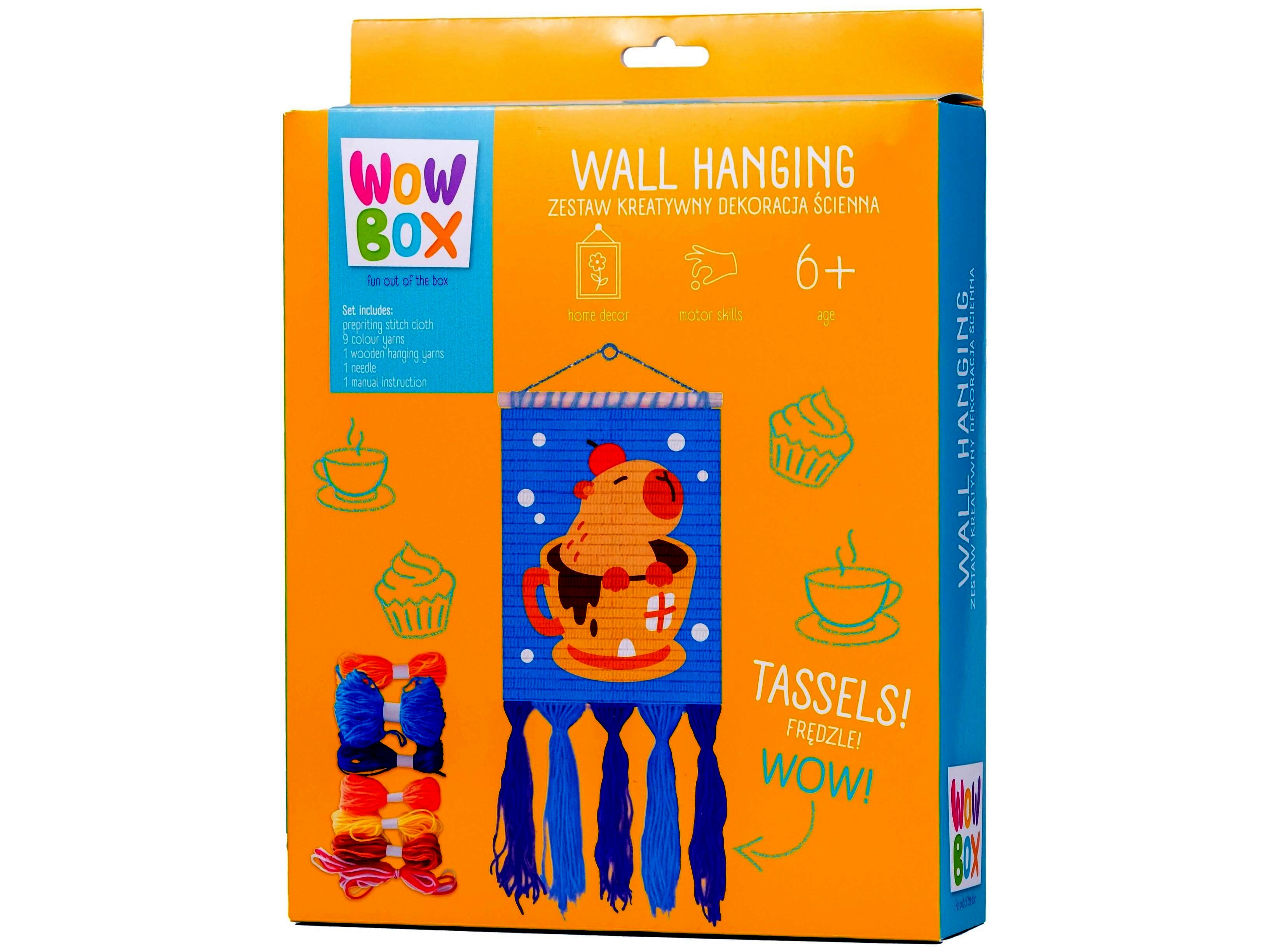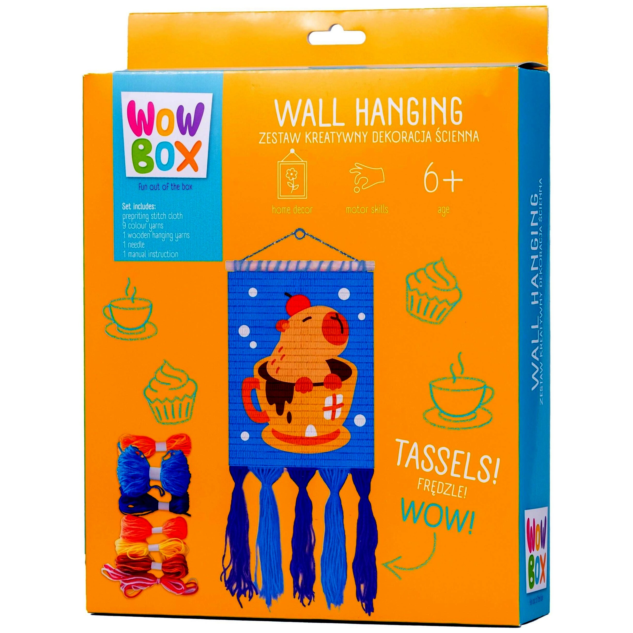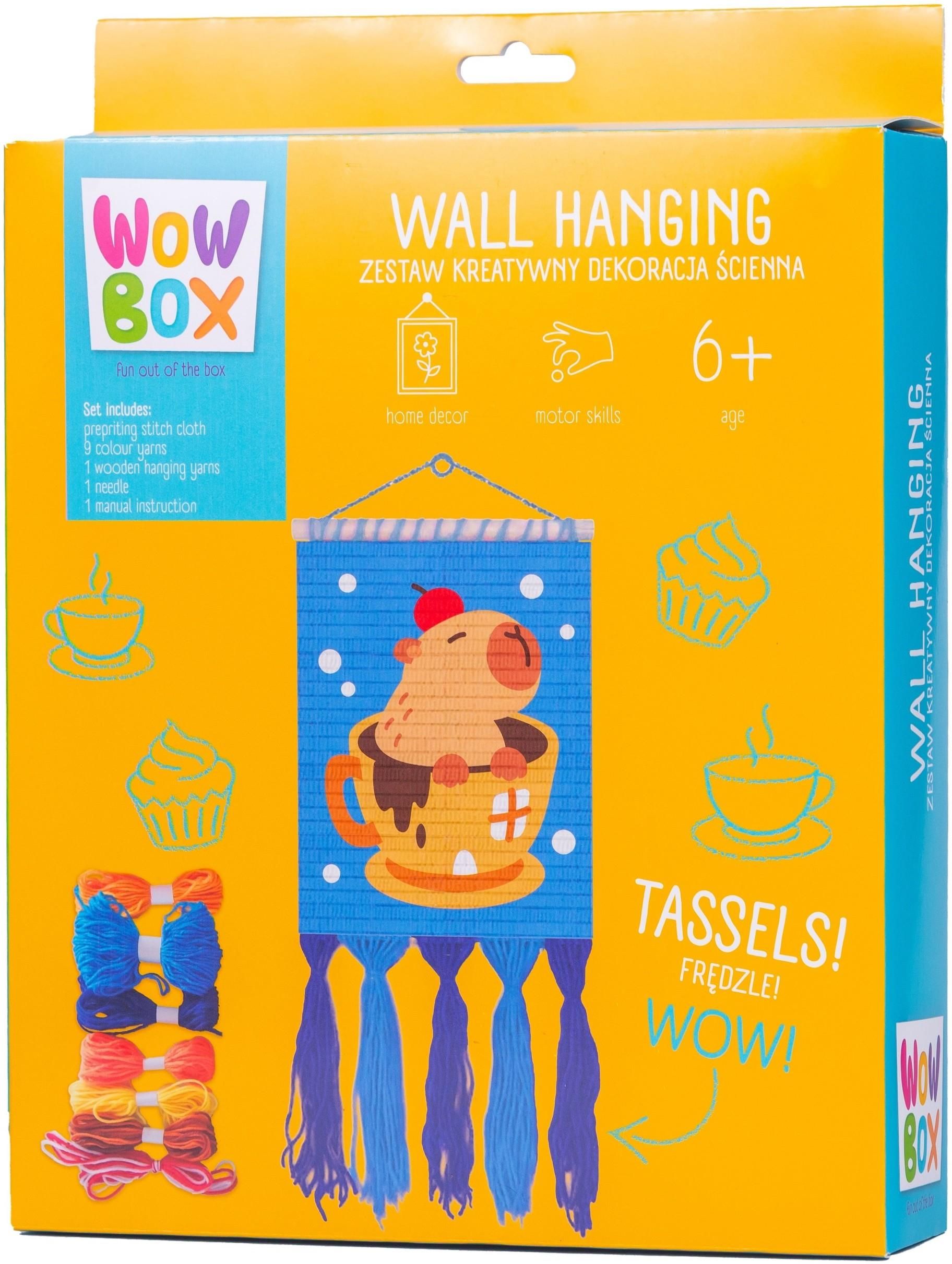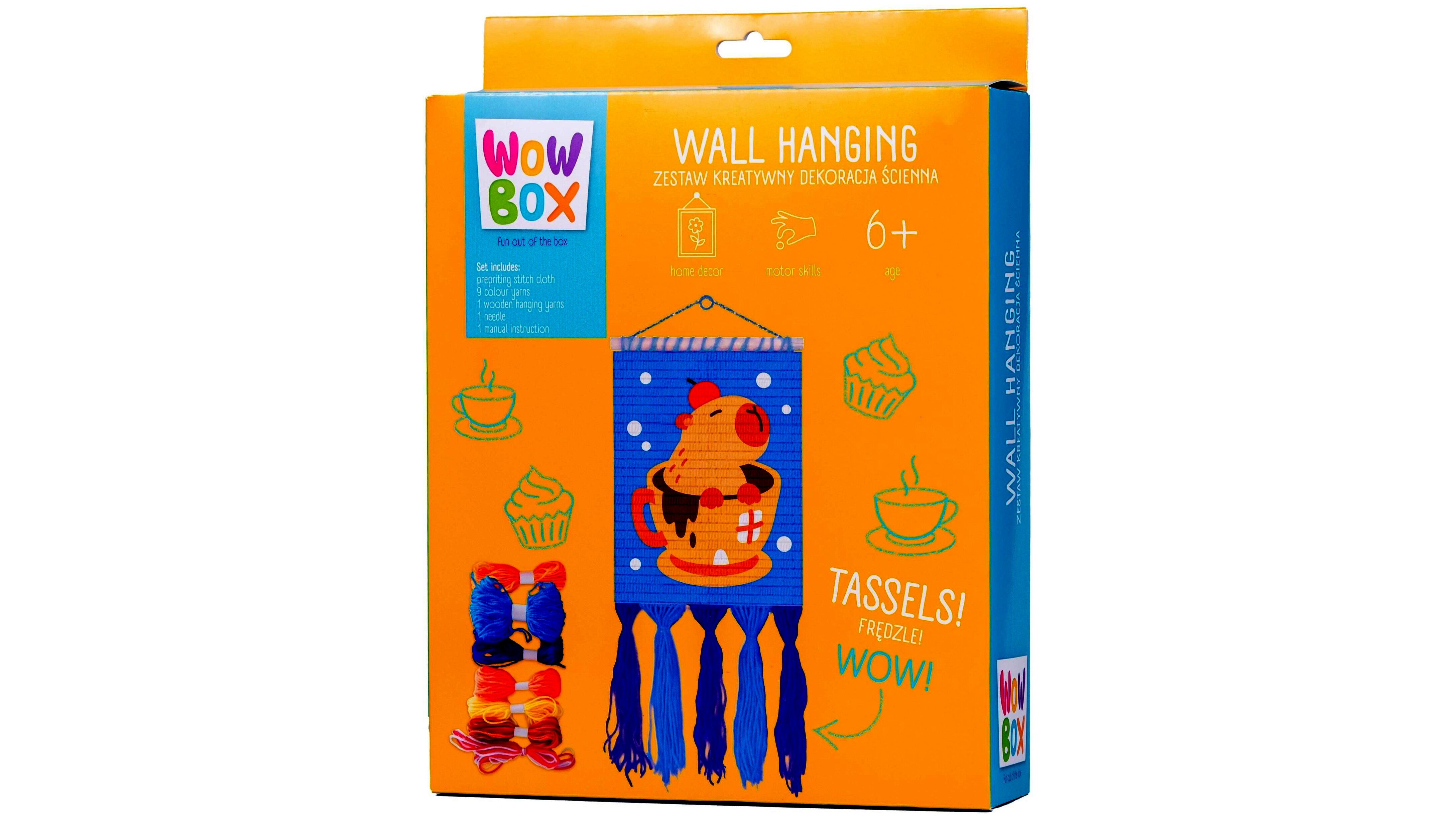 A Wow Box Kapibarás csésze makramé készlet egy kreatív szett, amely lehetővé teszi a gyerekek számára, hogy saját falidíszt készítsenek.