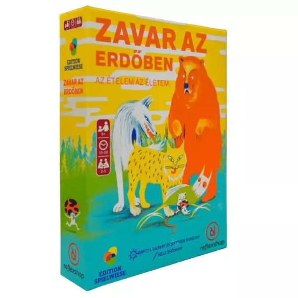 Egy ág reccsenés riaszt fel álmodból - hideg szél zúg a fa ágak között, zörögnek a levelek. Az erdő állatai újabb vadászatra indulnak, miközben korgó gyomorral figyeled őket a rejtekhelyed mélyéről. De vajon mikor jön a tökéletes pillanat? Keress magadnak élelmet, de ha az ösztönöd cserben hagy - vadászból könnyen préda leszel.Mennyire vagy éhes? Merüljetek el a Zavar az erdőben társasjáték izgalmas világában, ahol az állatok folytonos küzdelme teszi próbára az ügyességeteket és stratégiai gondolkodásotokat!