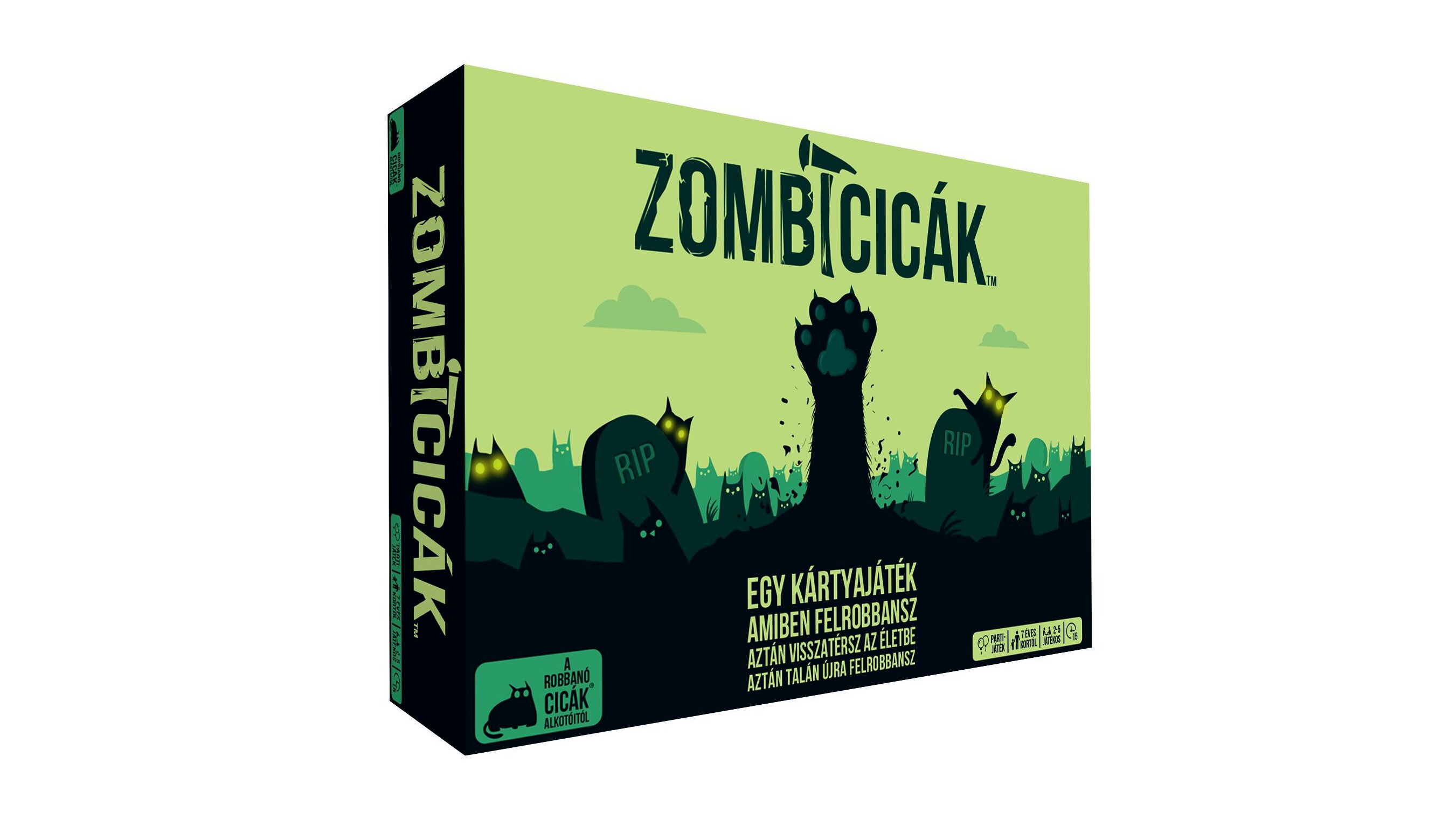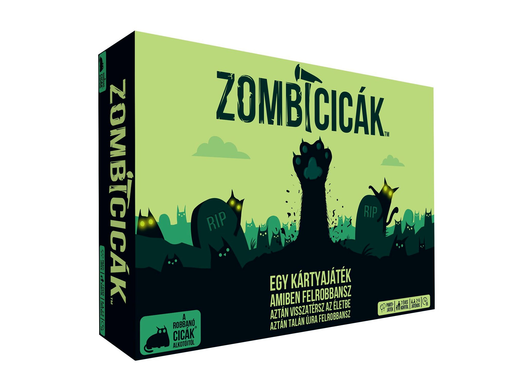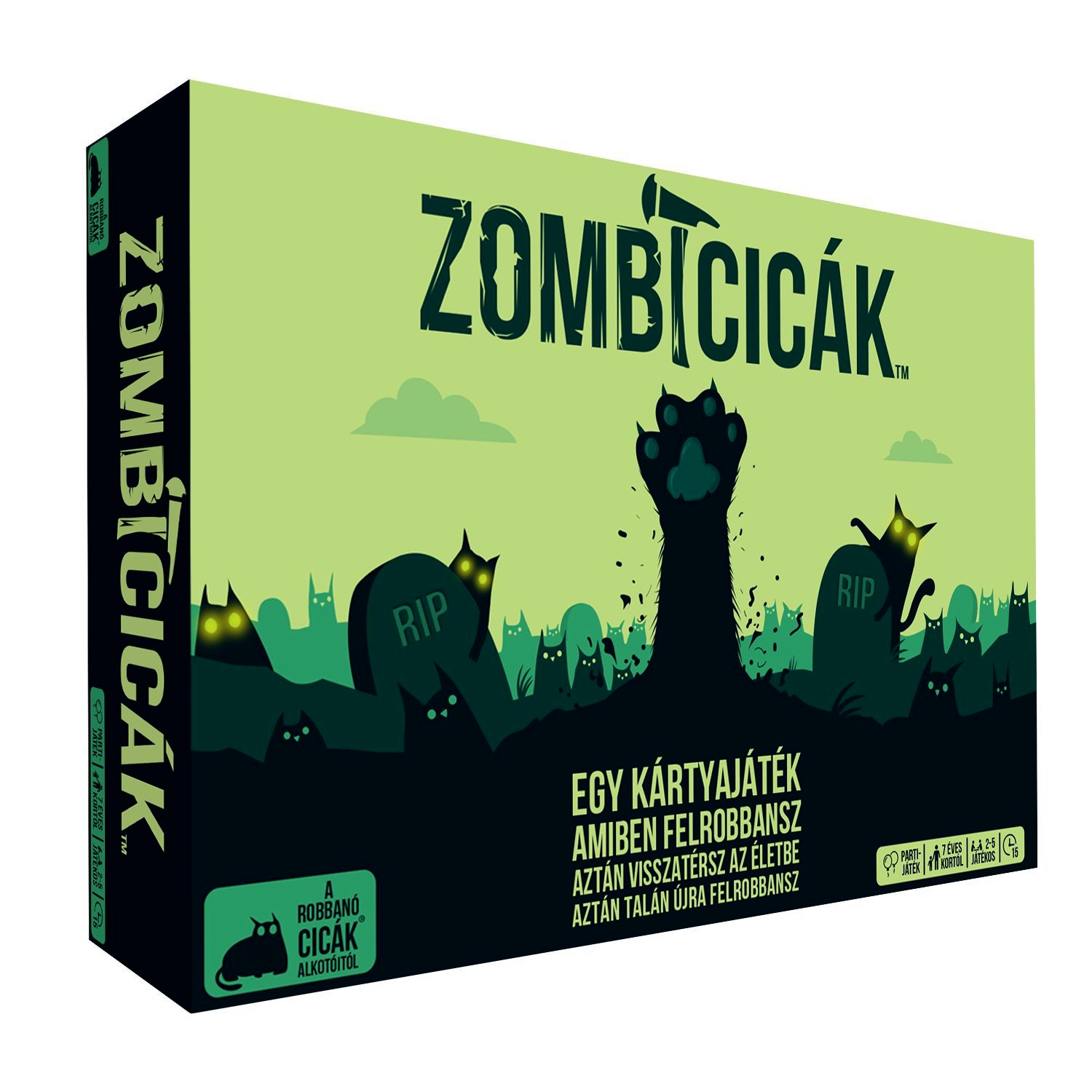 A Zombicicák egy pörgős és vicces extrém partijáték. A játékosok meg akarják úszni, hogy robbanó cica kártyát húzzanak a pakliból... de ha mégis, visszatérhetnek a halálból! Ravasz trükköket is bevethetnek: lapokat csenhetnek egymástól, megakadályozhatják kártyák kijátszását, átrendezik a pakli legfelső lapjait...Keverhető a Robbanó cicák játékkal, így még élvezetesebb lesz a parti.